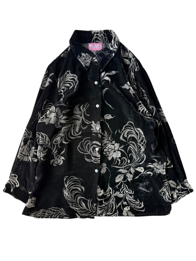 【Laura Scott】 Floral shadow pattern Velvet shirt