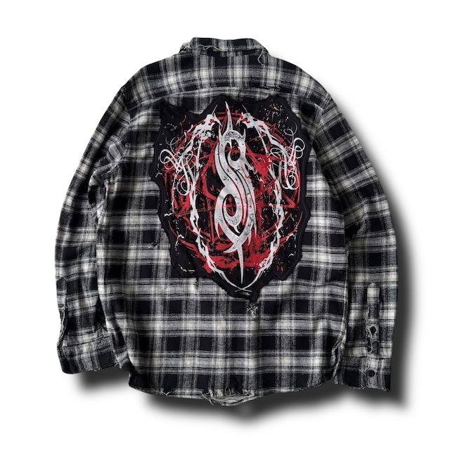 ♾ORIGINAL REMAKE♾ "slip knot" custom design check patterned L/S shirt sizeXL