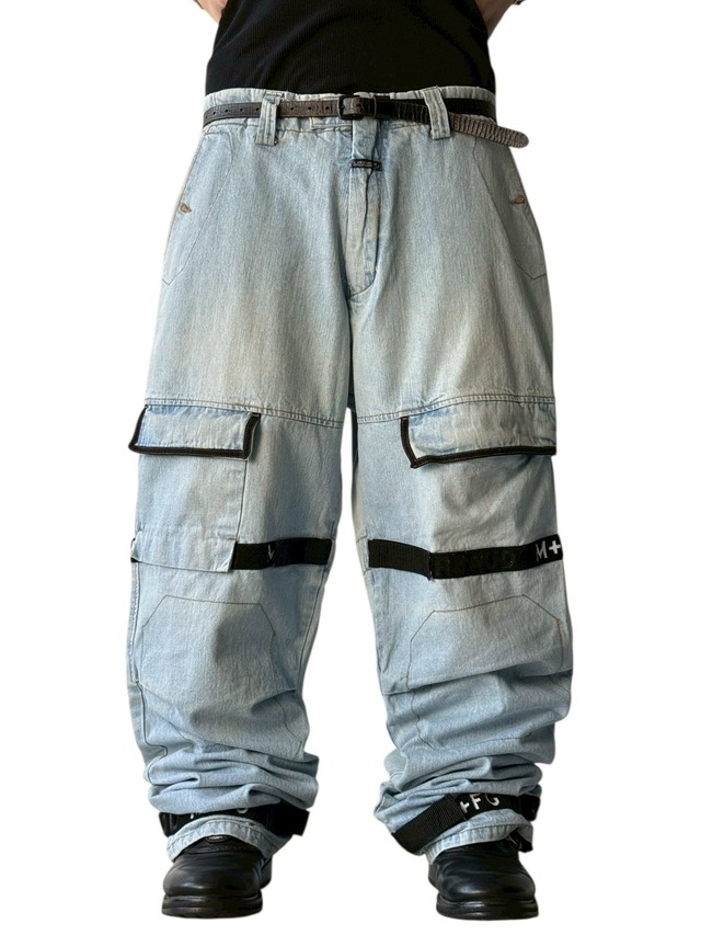 【MARITHE FRANCOIS GIRBAUD】 Shuttle Tape washed wide denim pants / Black Tape