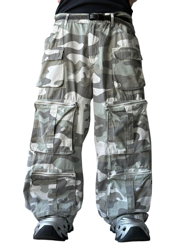 【Design used】various 3D pockets camouflage wide cargo pants