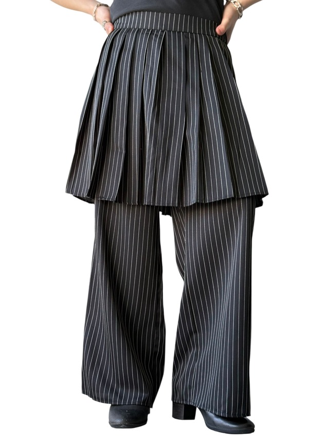 【Design used】Chalk stripe skirt-docking straight easy slacks