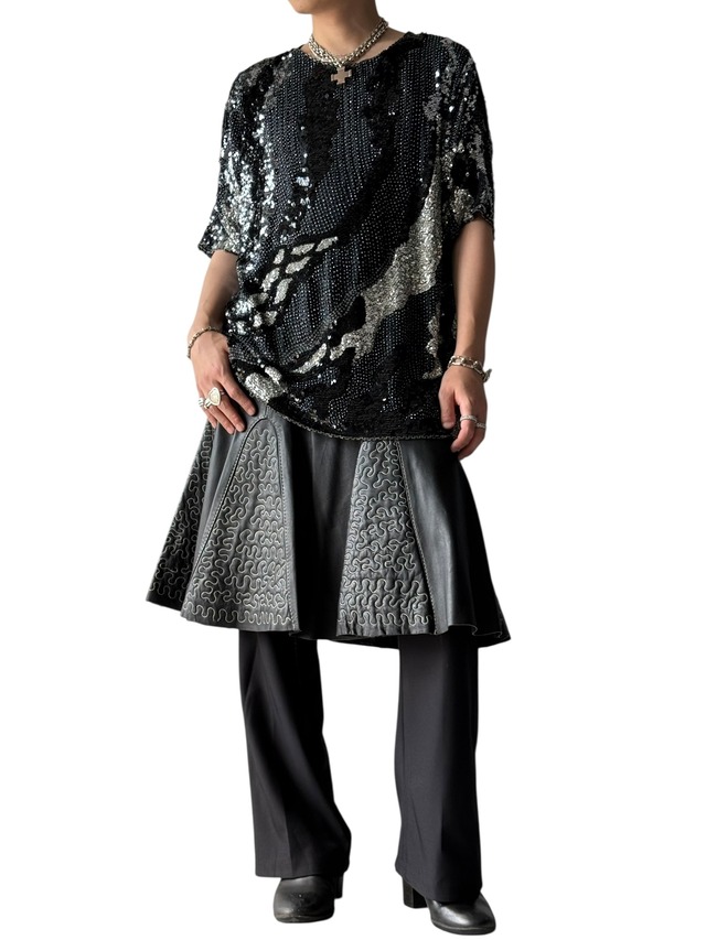 【Compliment HIGH FASHION】 various bead decoration designs T-shirt 究極…... 鬼のように様々な種類のビーズがバランスよくデコレーション、装飾された唯一無二なカットソー ✨✨ 身幅しっかりあるボックスシルエットがスタイリングをより仕上げてくれるスペシャルアイテム❤️ 間違いなくお洒落モードです⤴︎⤴︎ ◾️SIZE表記 XL ◾️実寸 身幅62cm 着丈70cm ゆき丈52cm ◾️素材 polyester rayonなど ◾️状態 used 着用感ございます。 致命的なダメージはございません。 ◾️着用モデル171cm ※多少写真との色味の違いが生じる場合がございます。ご了承ください。
