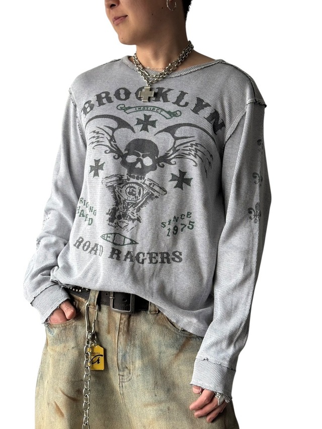 ♾XTREME COUTURE♾ y2k skull wing stitch work design thermal size S