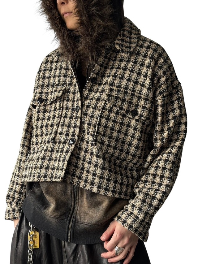♾Shinesdar♾ wide short length tweed shirt jacket sizeM
