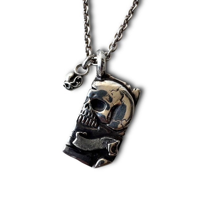 ‼️Special‼️ ♾vintage silver jewelry♾ skull plate×small heart motif double charm top necklace -sv925-