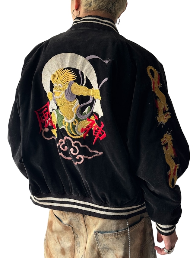 ♾design used♾ Embroidery velours souvenir jacket "風神"