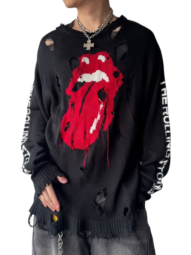 ベロのビッグモチーフにグランジデザインが最高にクールなニットセーターの入荷✨️