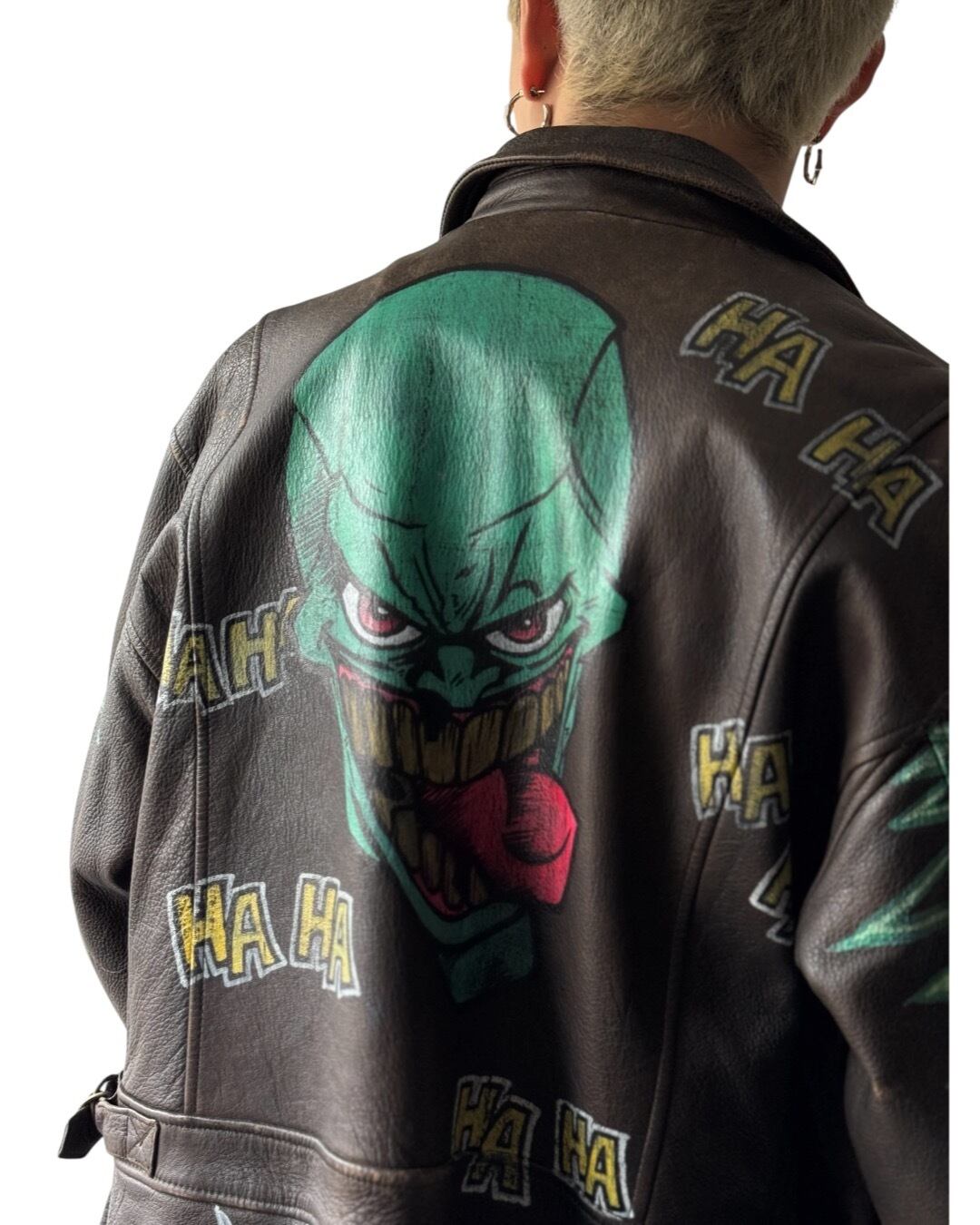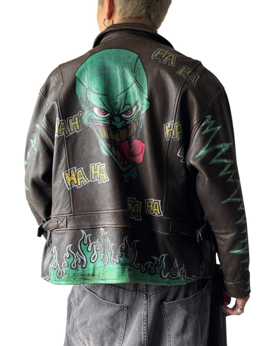 all fade aging flight detail hand painted short length leather jacket