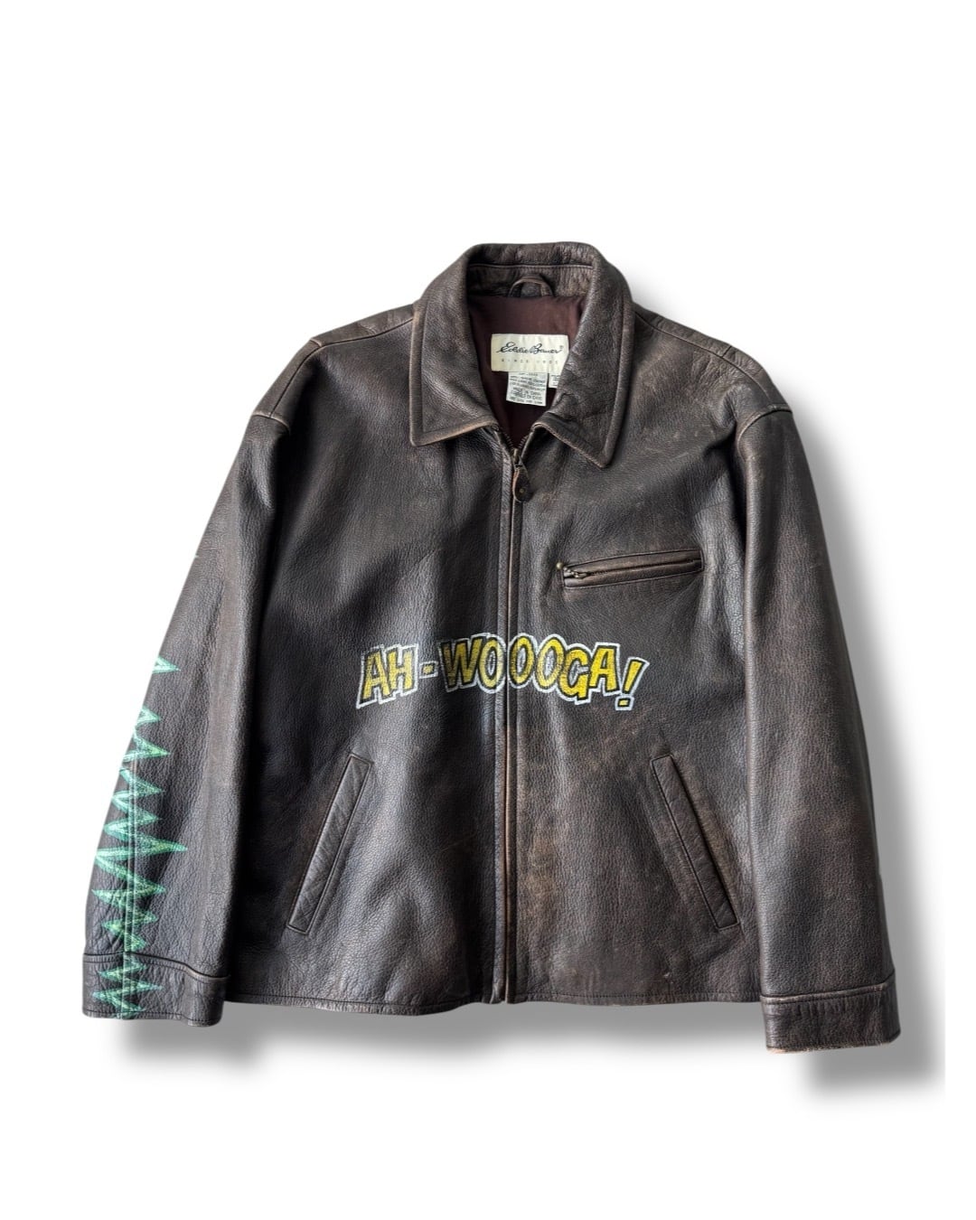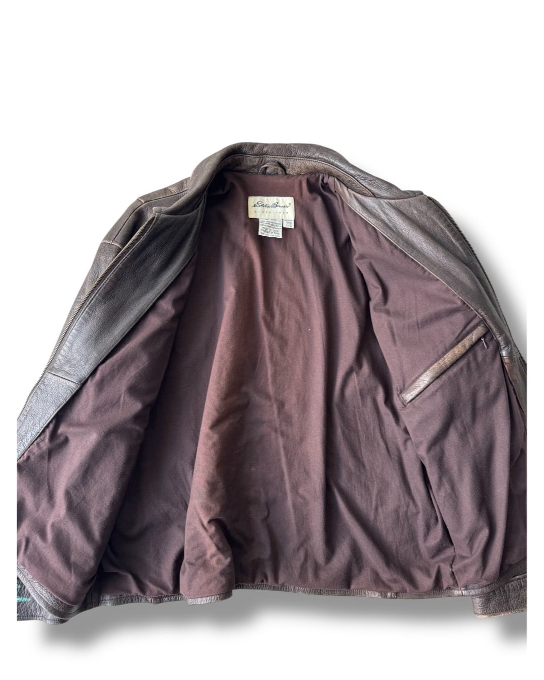 ♾90‘s Eddie Bauer♾ all fade aging flight detail hand painted short length leather jacket