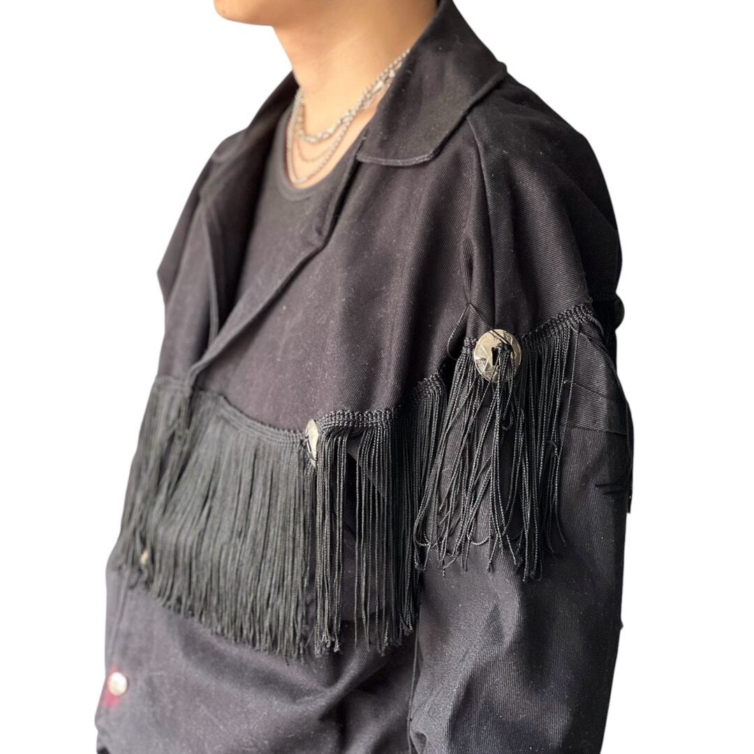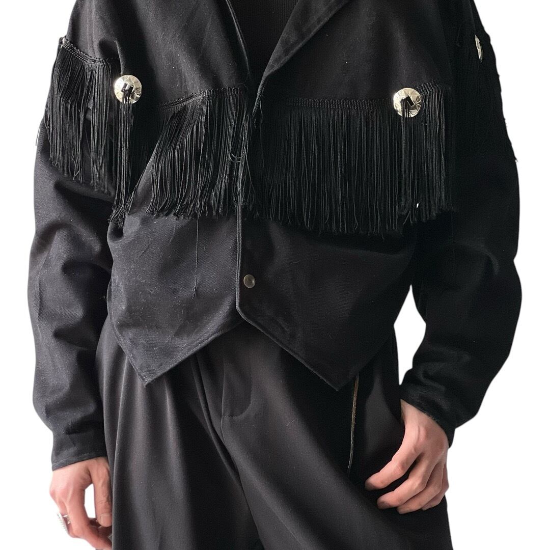 コンチョボタンやフリンジ付きでオールブラックの切り替えが超COOL⤴︎⤴︎