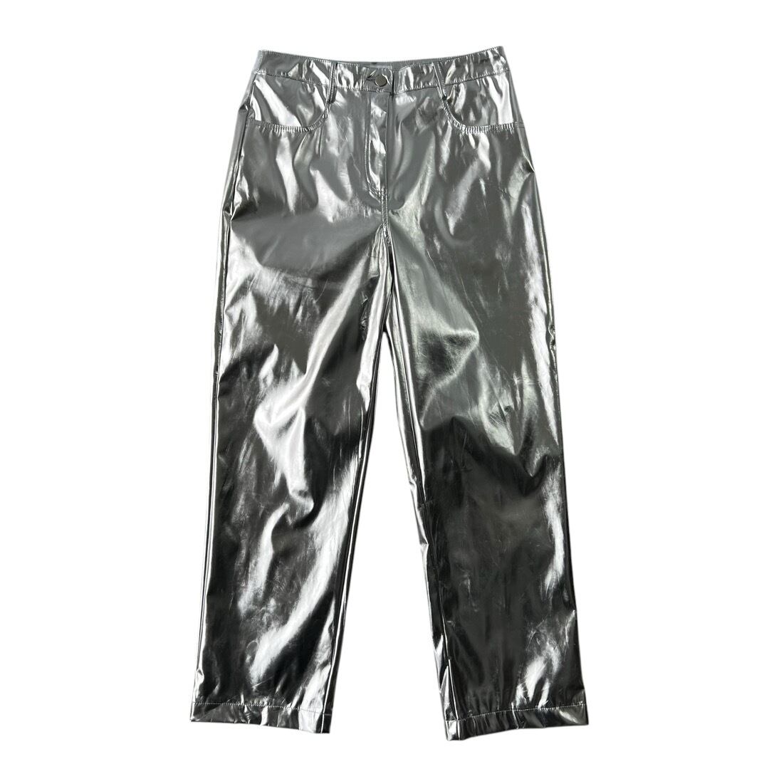 Silver coating PU design straight pants