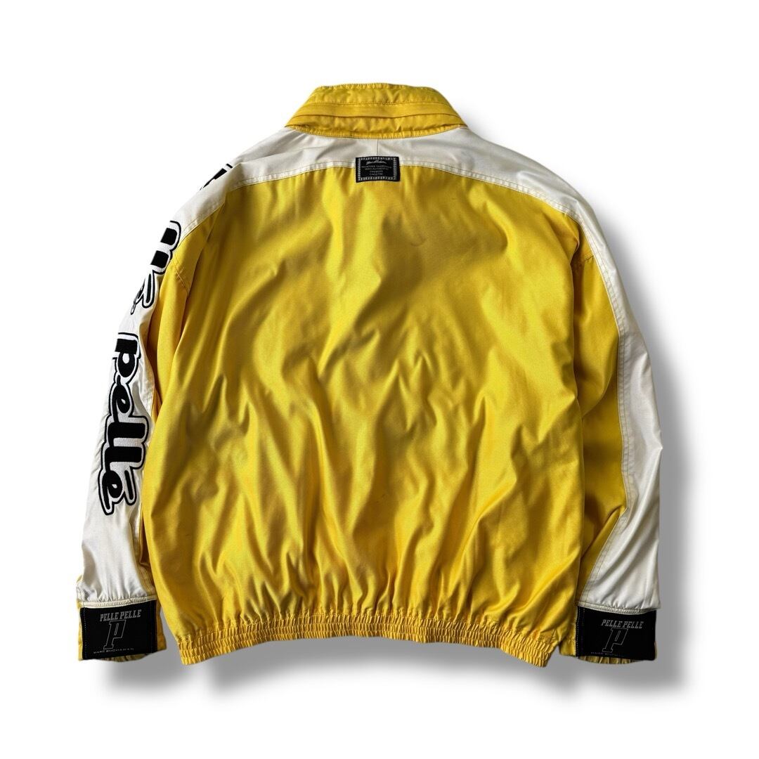 ファインなパキッと目を引くイエローにシンプルな白のサイドライン切り替えがトラックジャケットらしいデザインとなっておりワンサイドにはPELLE PELLEのBIGロゴ刺繍✨️