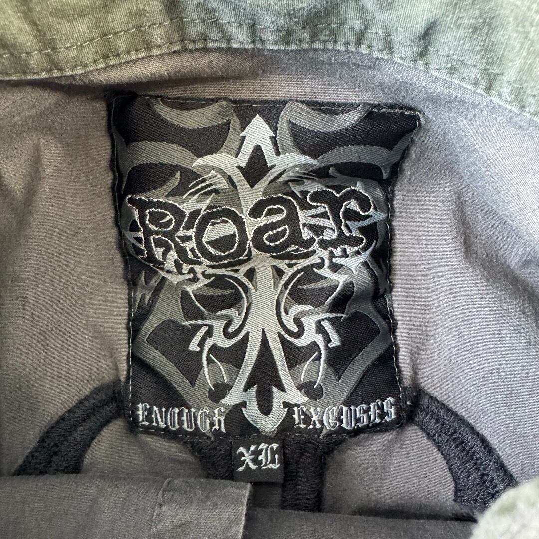 ♾ Roar ♾ Embroidery flocky print total pattern shirt size XL