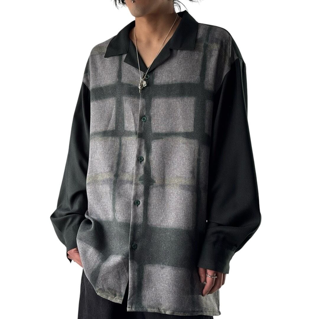 ルードなニュアンスぷんぷん丸なアートチェックパターンオープンカラーシャツ◎