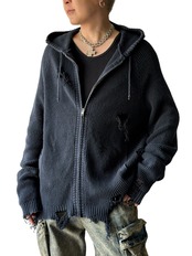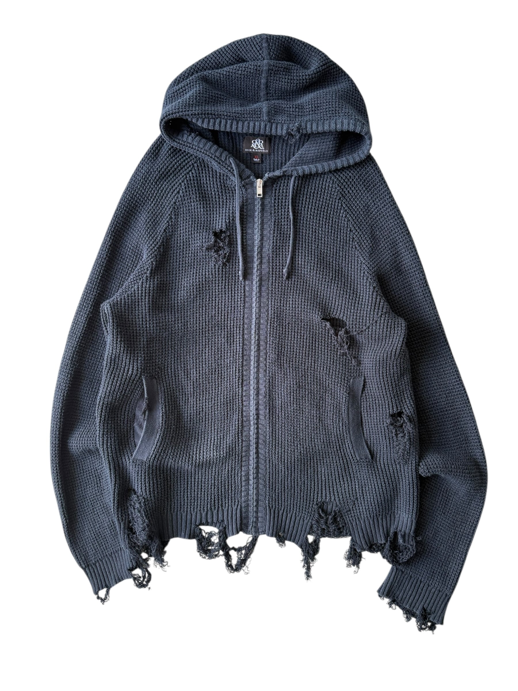 【ROCK&REPUBLIC】 Distressed design knit zip hoodie