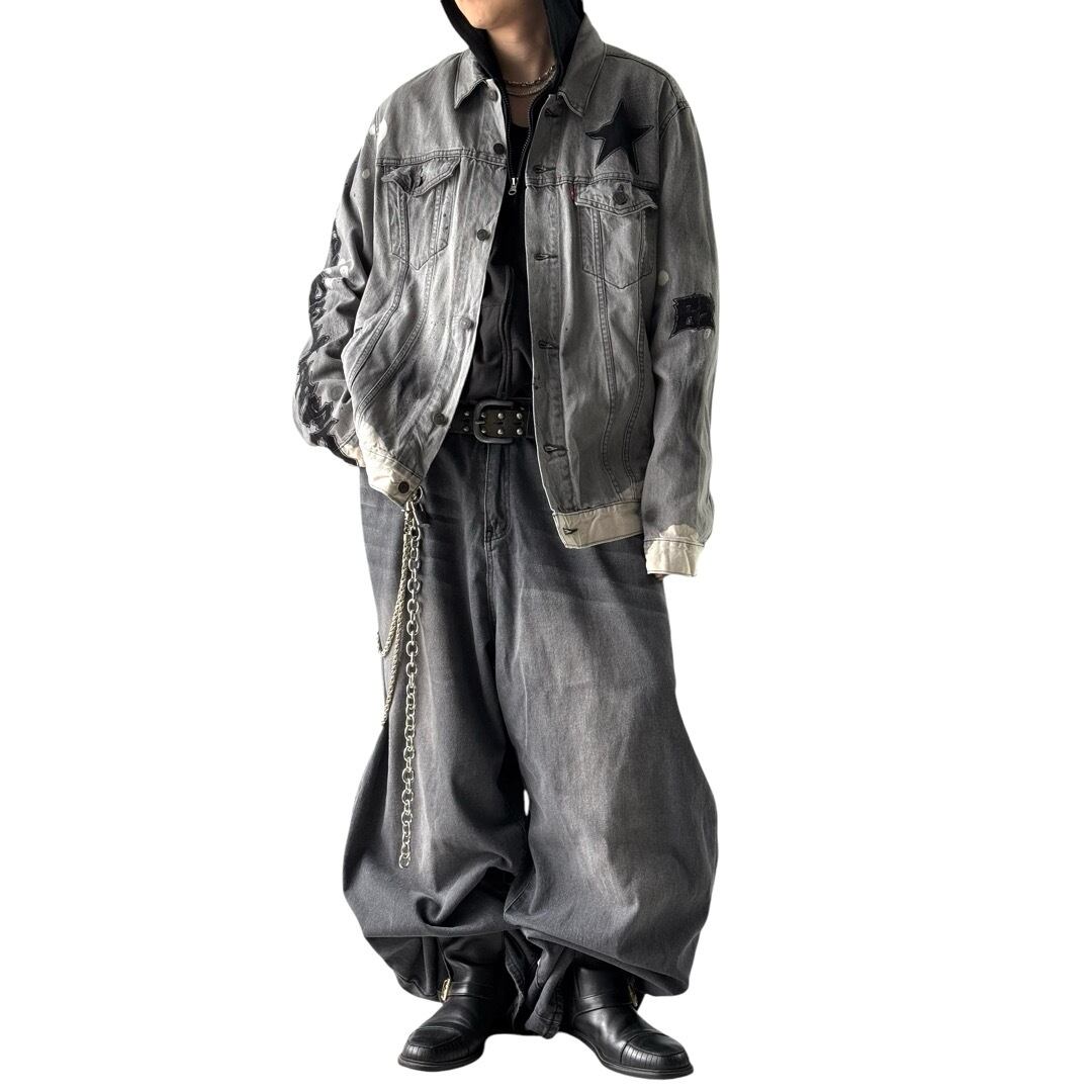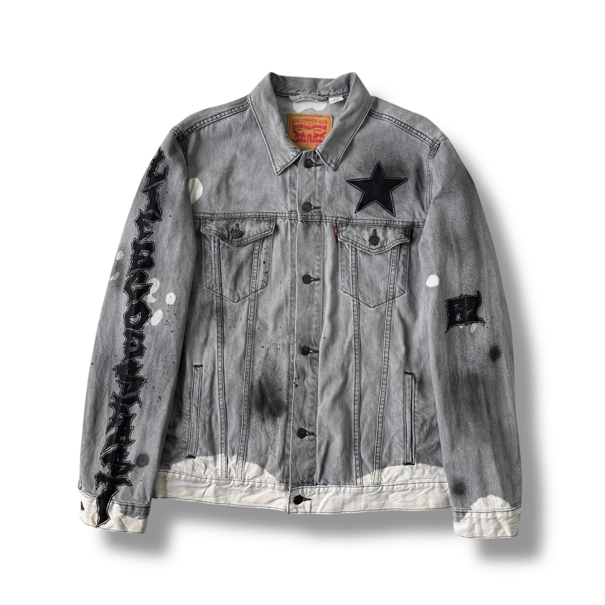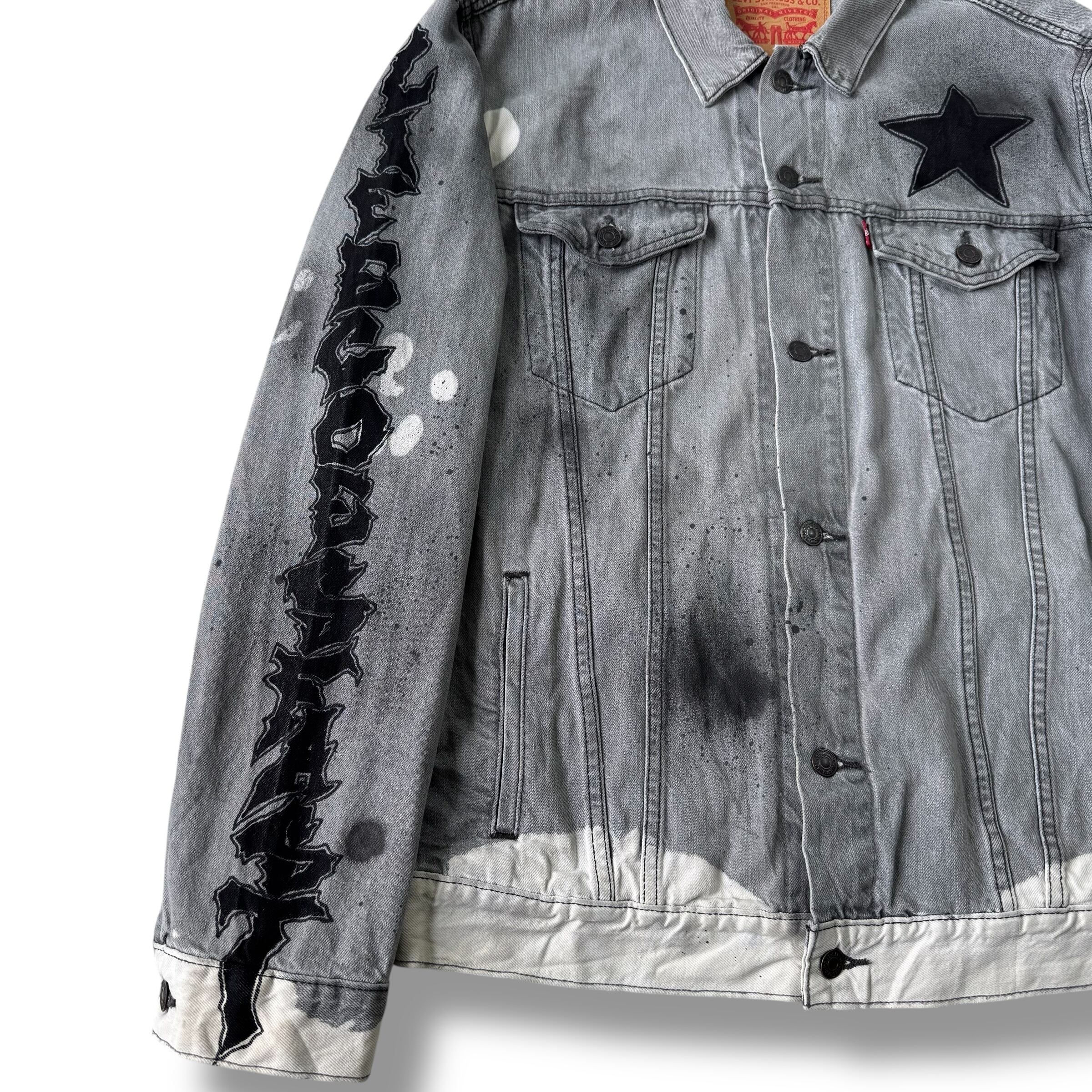 ♾Levi's♾ hand painted beads custom design good faded denim tracker jacket sizeXL