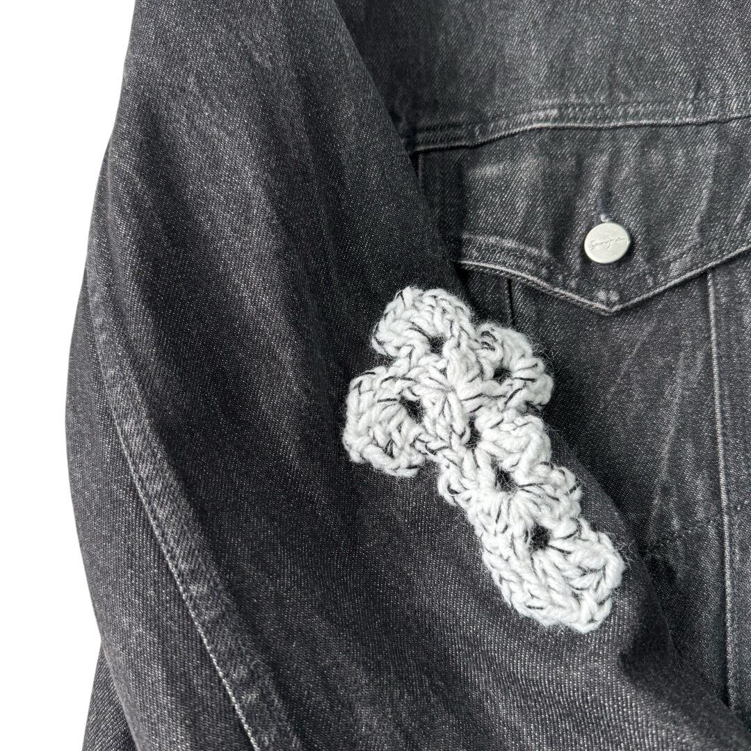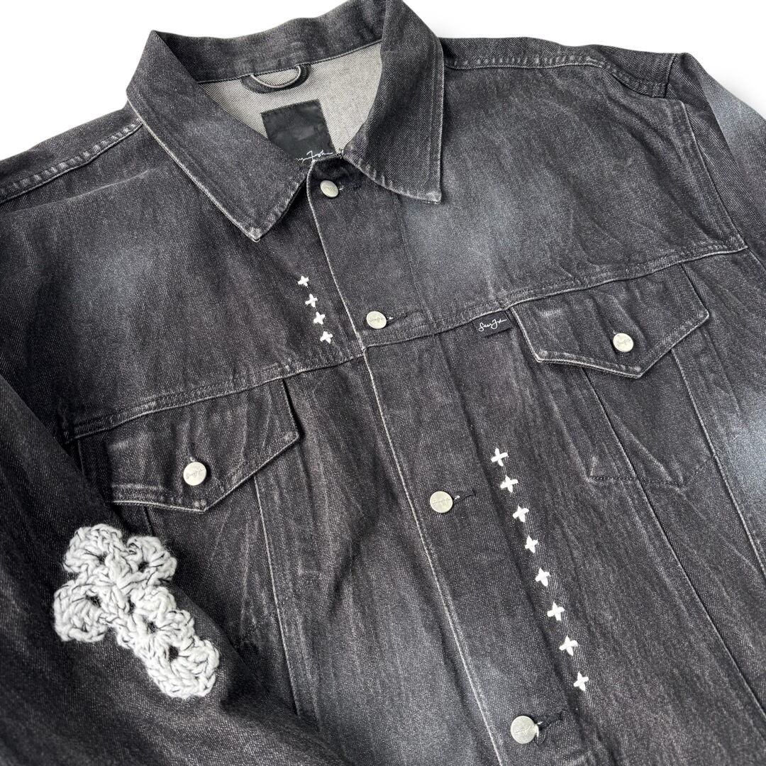 クロスモチーフのハンドカスタムデザインがオンリーなブラックデニムトラッカージャケットの入荷✨️