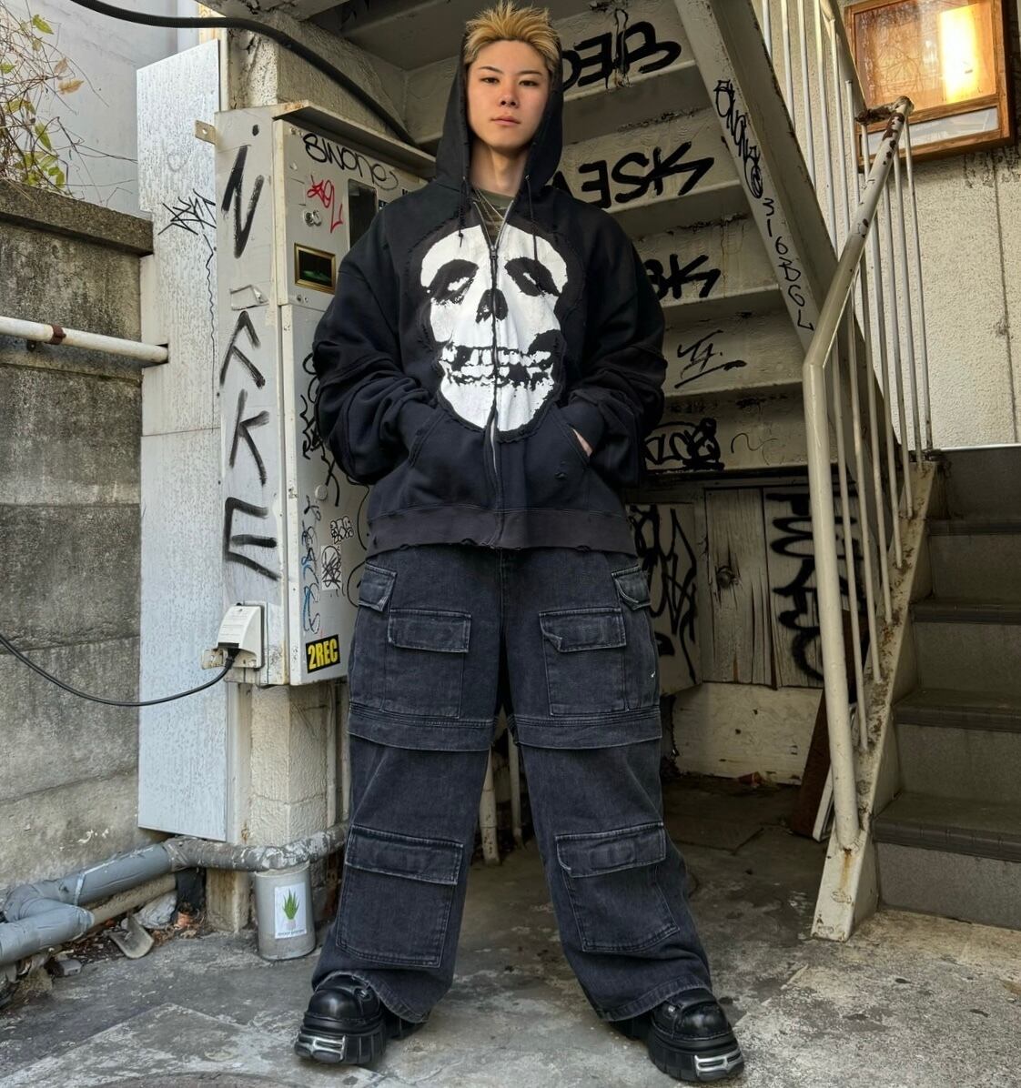 MISFITSのカスタム!フロントにMISFITSといえばのデザインとバックにはバンドロゴ‼️全体にダメージ加工を施したインパクト抜群でダイナミックな仕上がりが超目を引く1着‼️