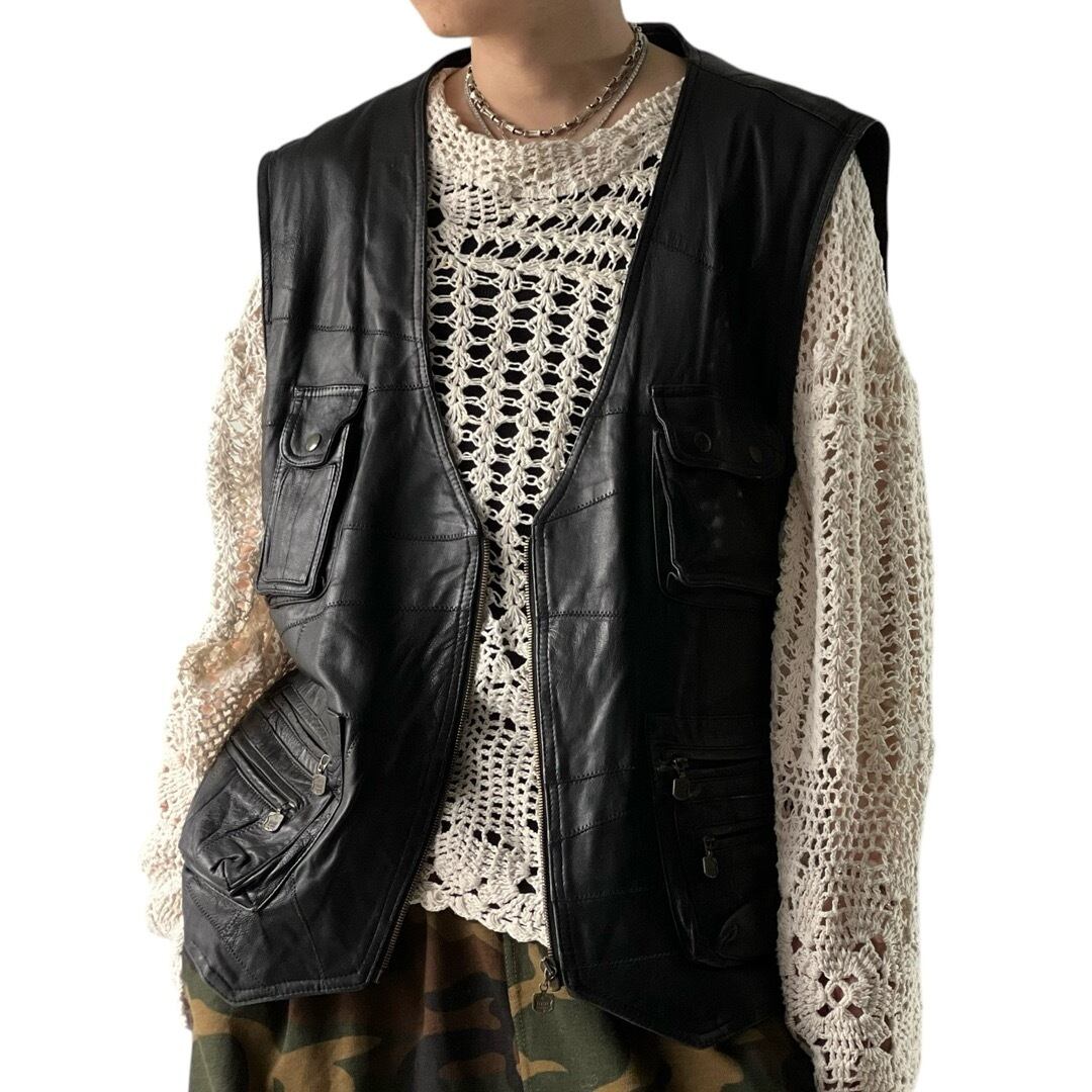 【ELAZAR】XXXXLsize Vintage LEATHER Vest