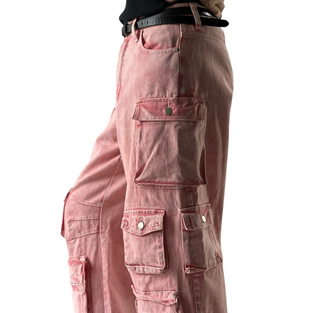 【FASHION NOVA】 "Various pockets" Cargo detail wide straight denim pants size:7