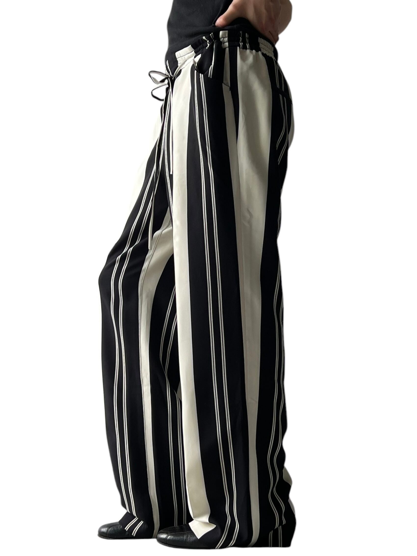 【INTERNATIONAL CONCEPTS】Stripe pattern wide straight Drawstring pants