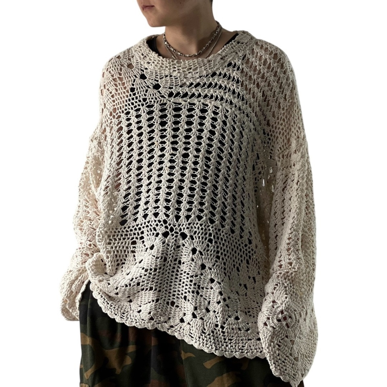 メッシュ編みで編立てた素材のニットカットソー!!!