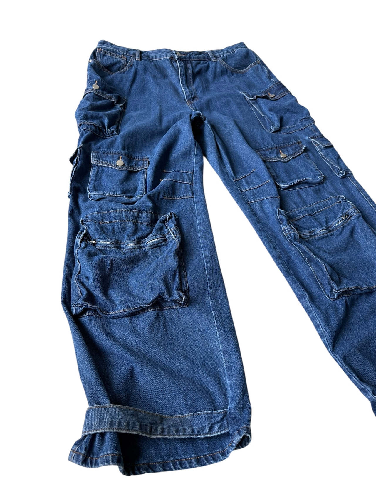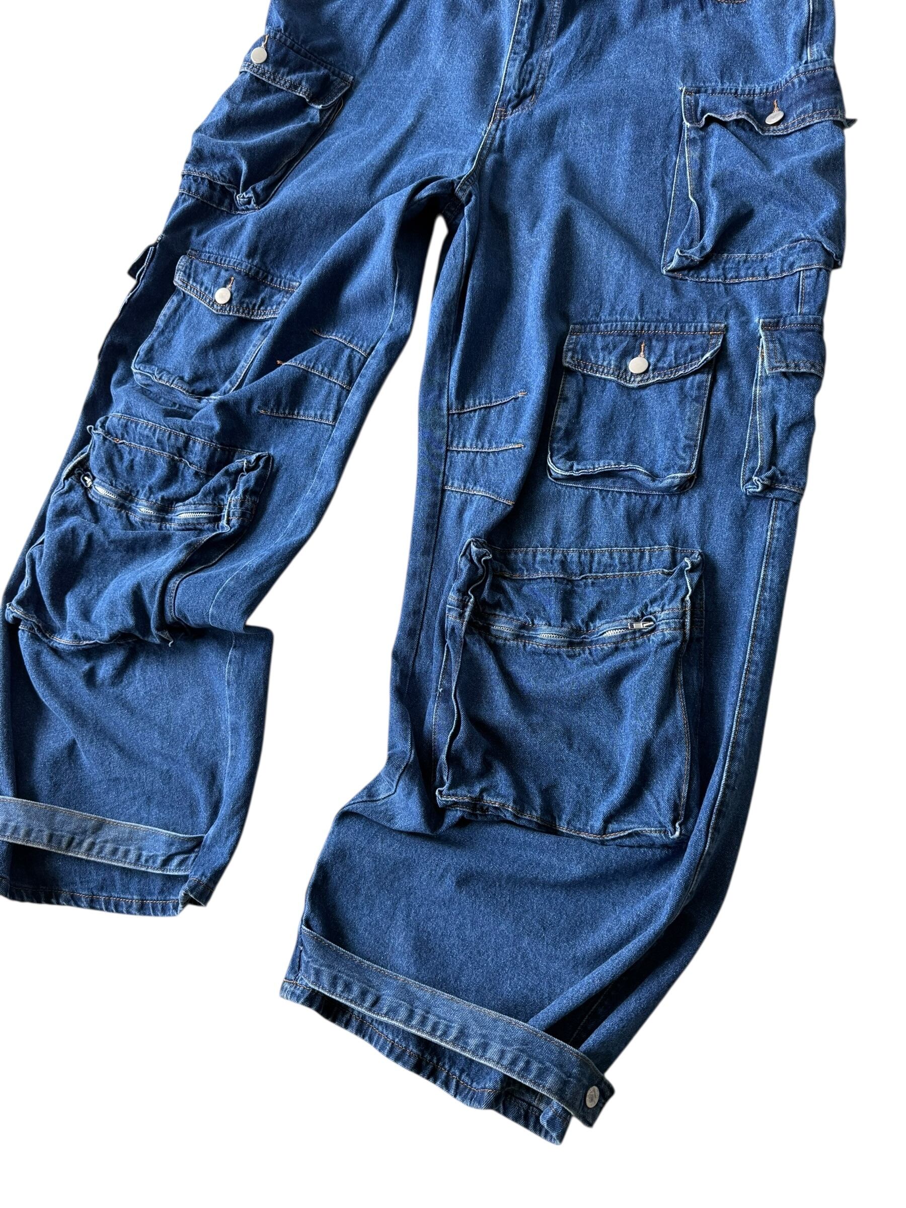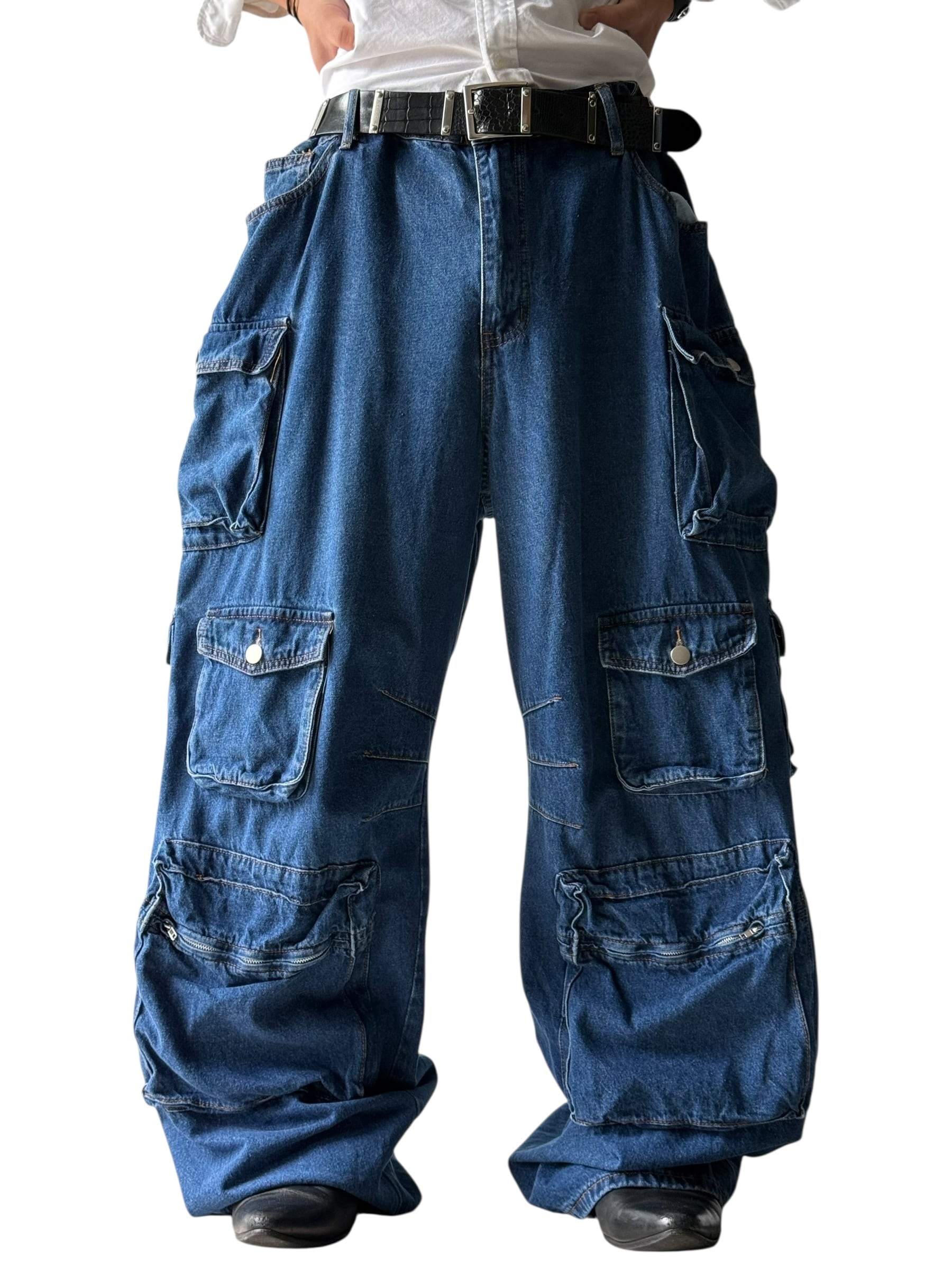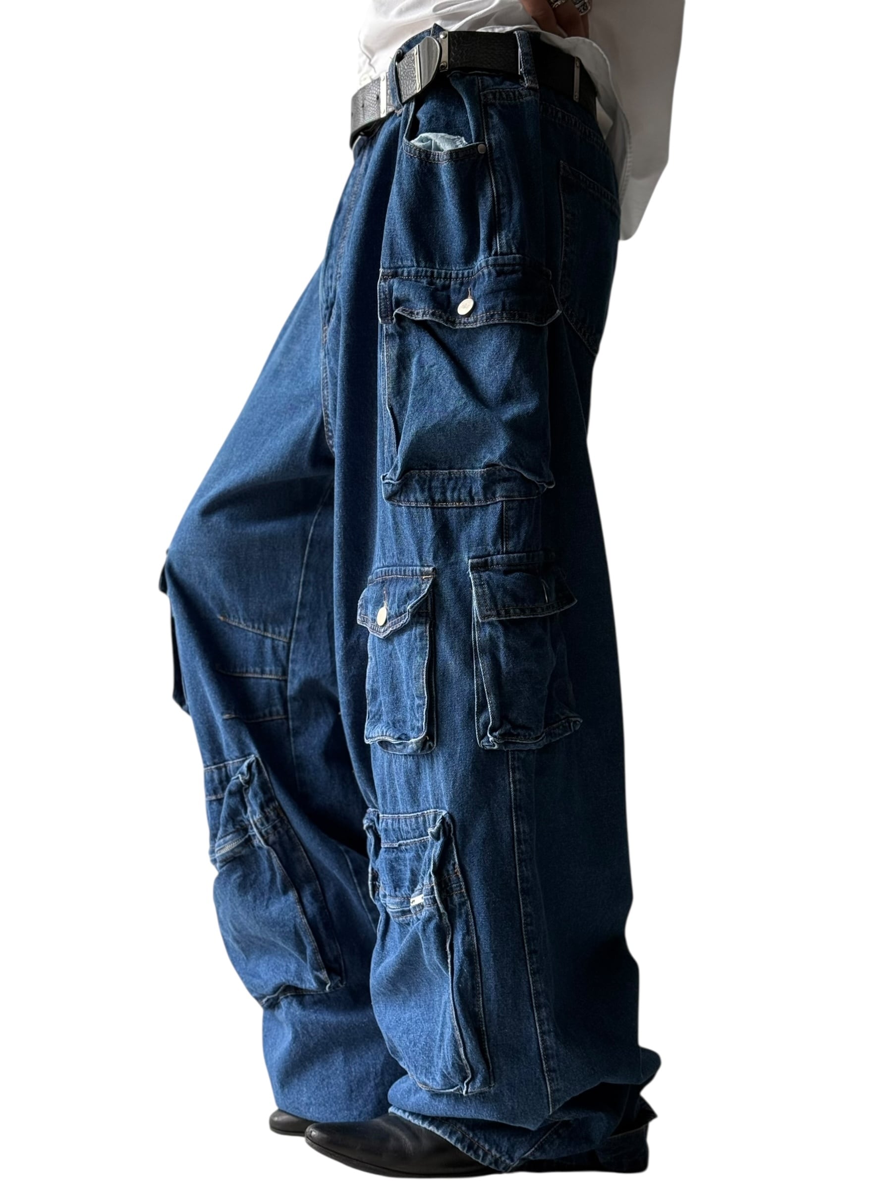 【Design used】 "Various pockets pattern" Mega wide denim pants