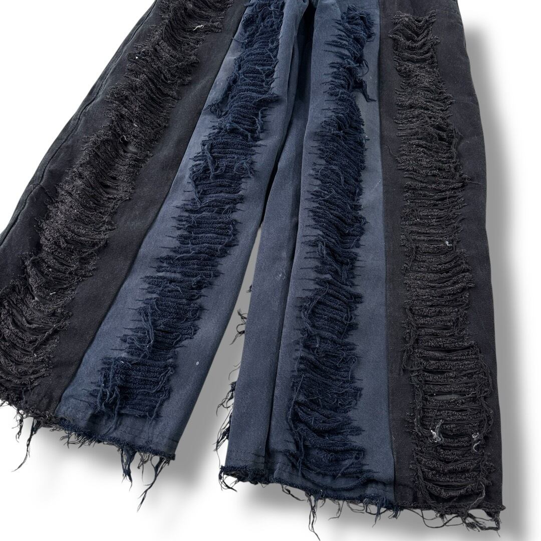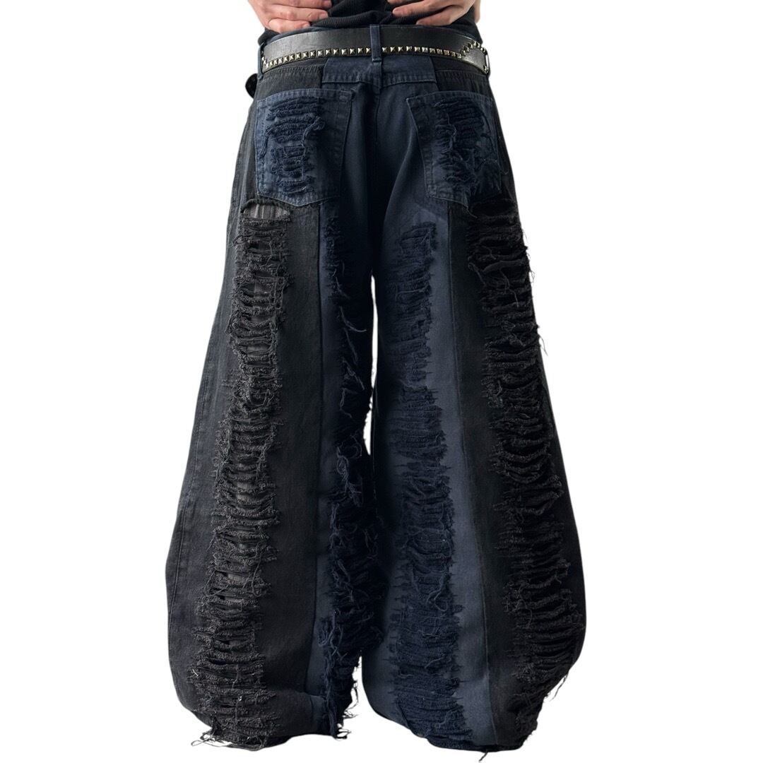 ♾REMAKE DESIGN USED♾ "half&half" damage design Custom wide silhouette denim pants