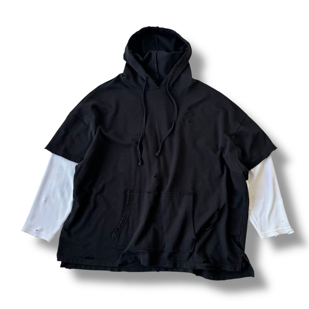 damage thermal layered pullover hoodie
