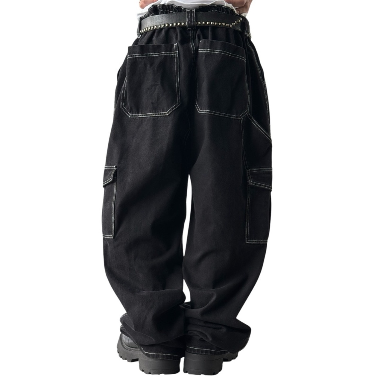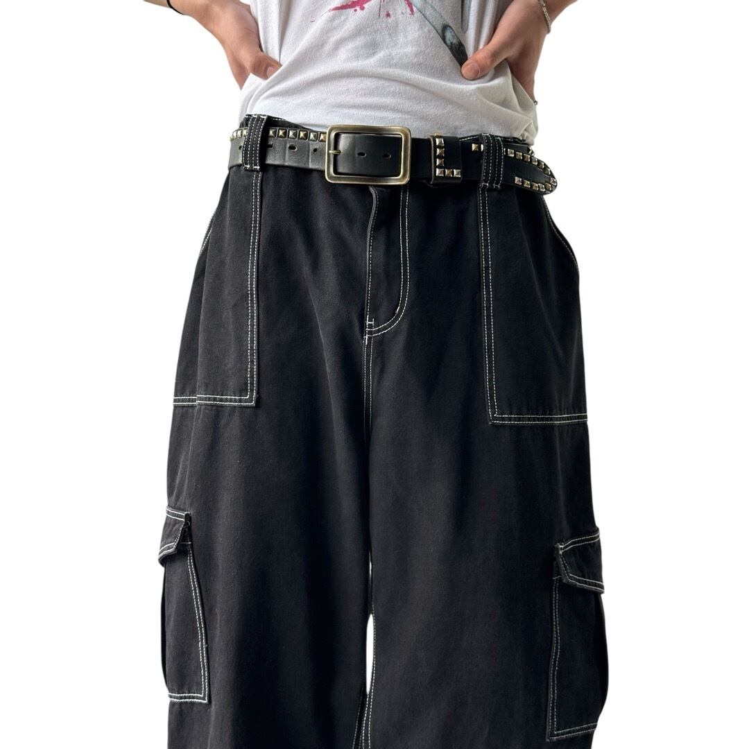 cargo design wide silhouette black denim pants