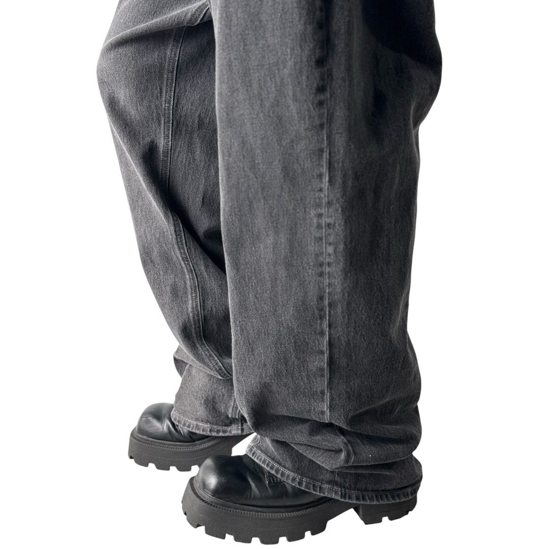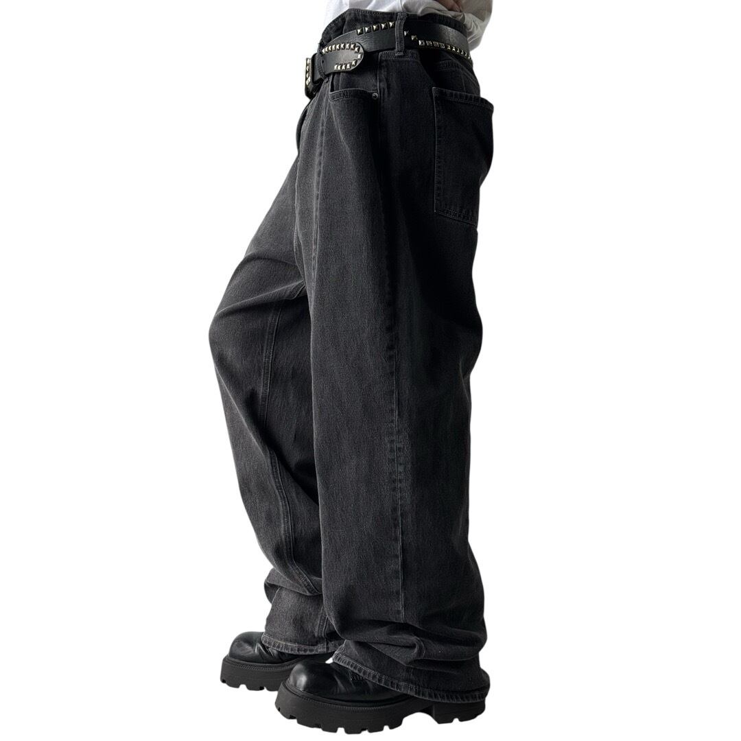 double face design wide buggy silhouette black denim pants