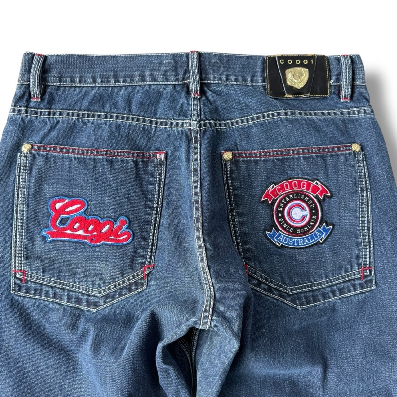 ♾️ COOGI ♾️ embroidered wide denim pants size W36 L34