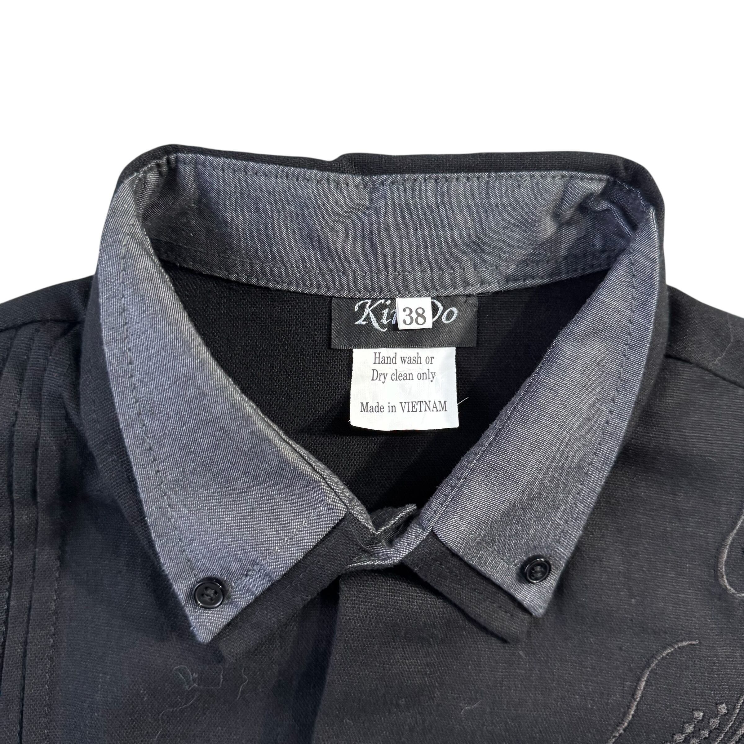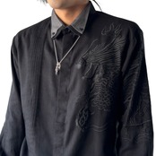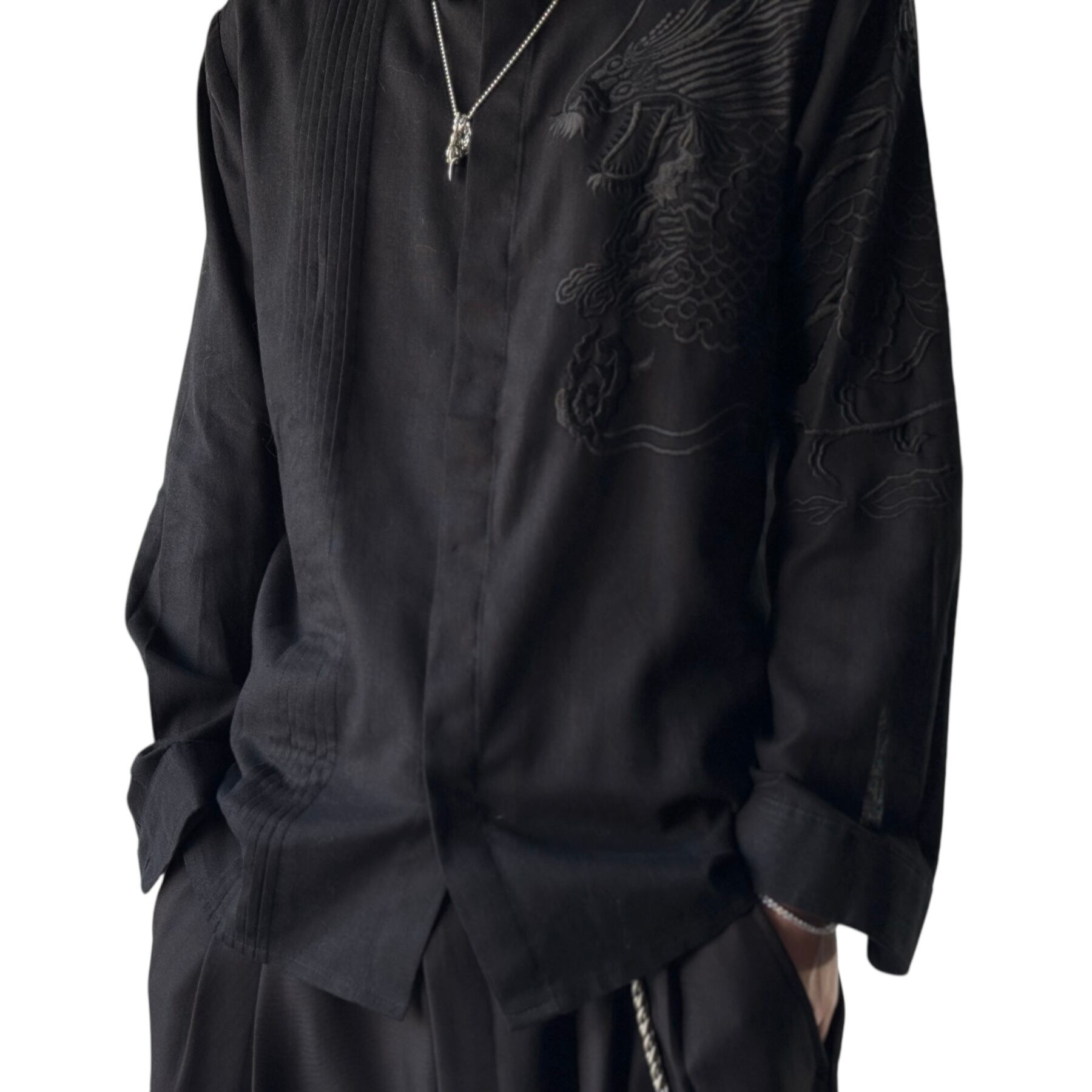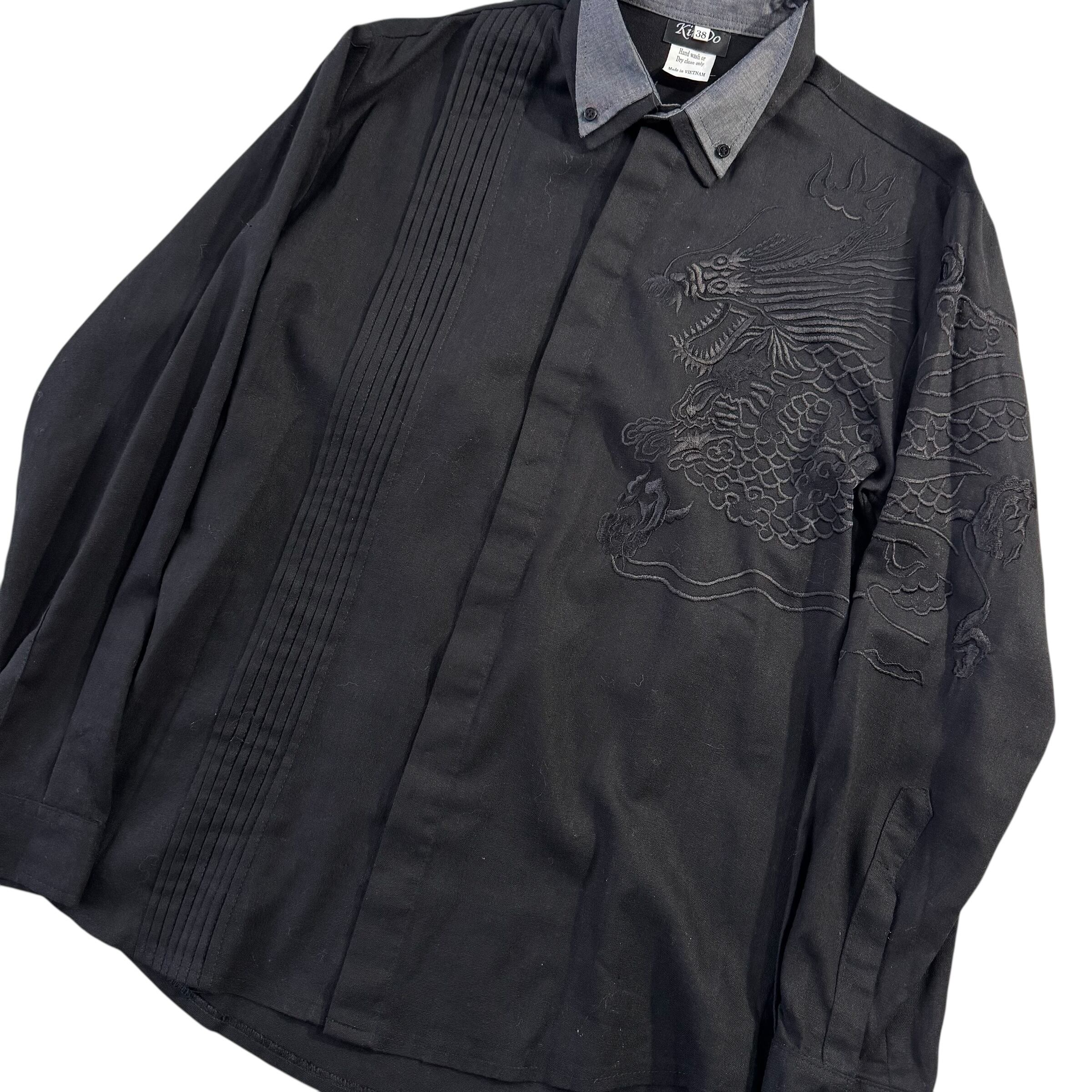 ♾kimdo♾ dragon embroidery fly front layered collar shirt size 38