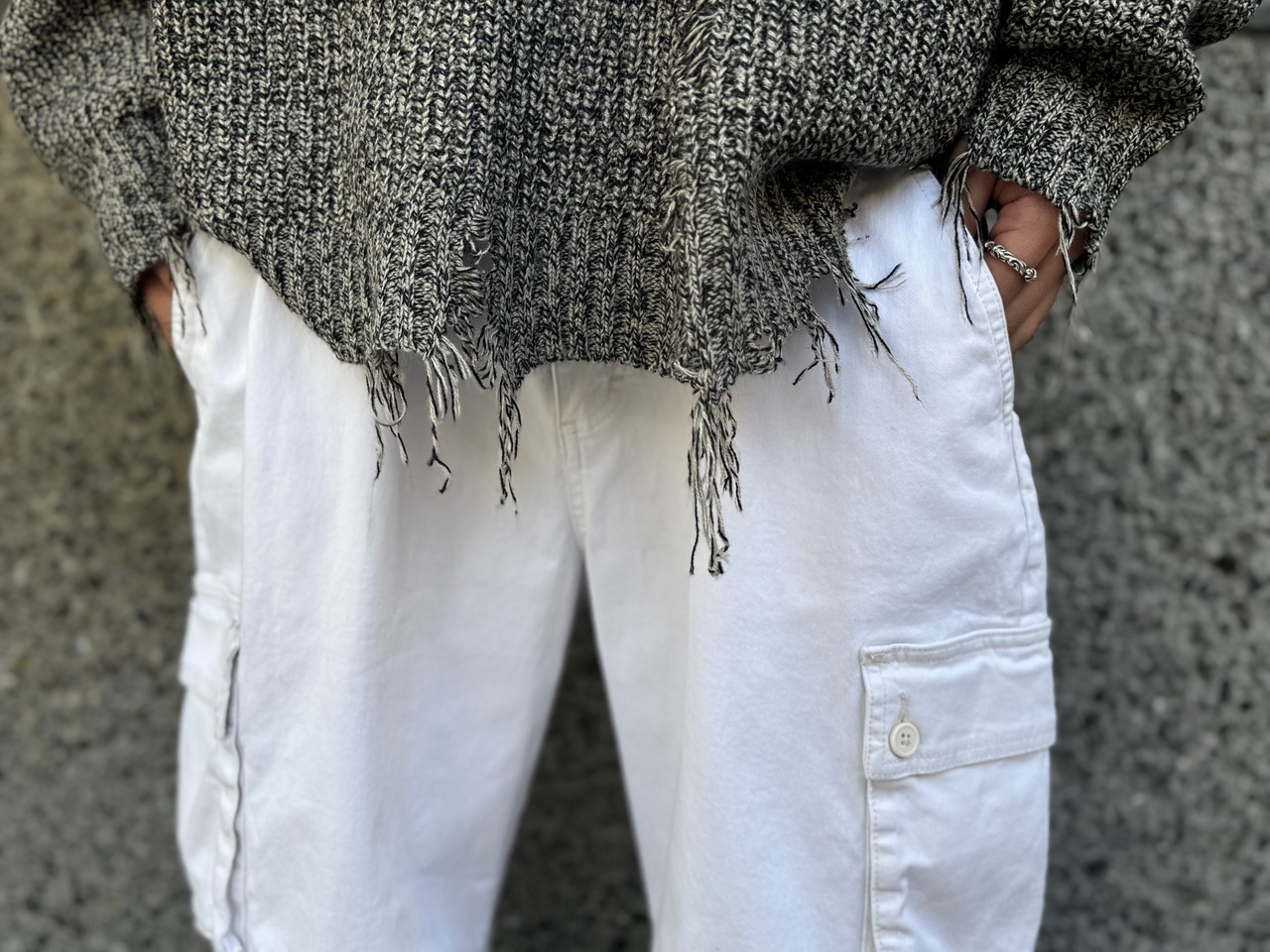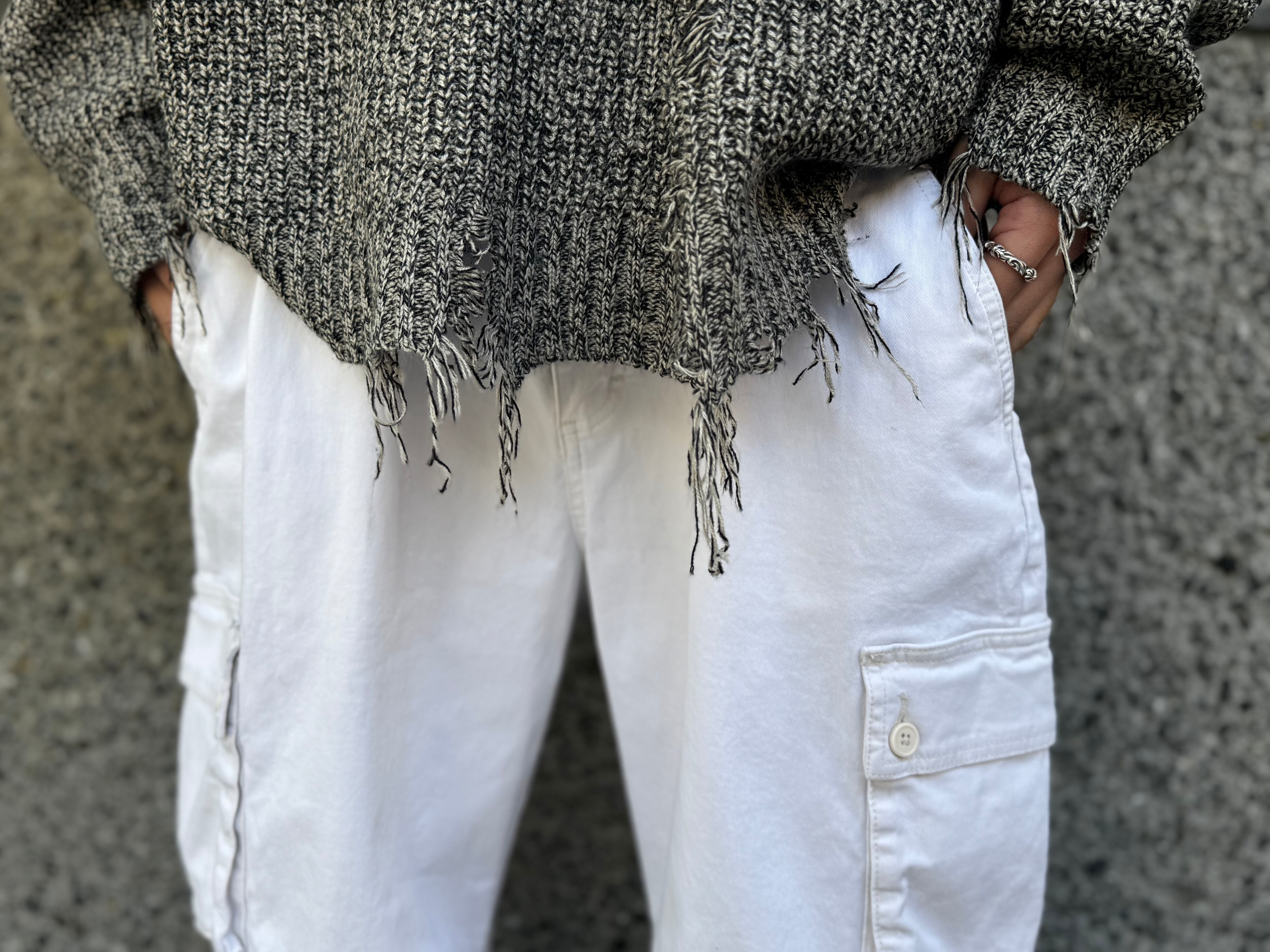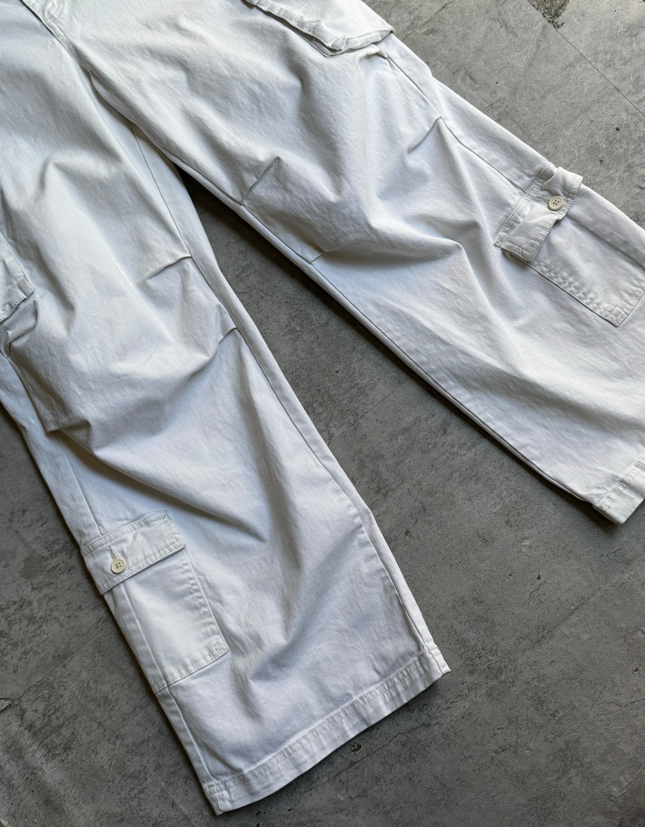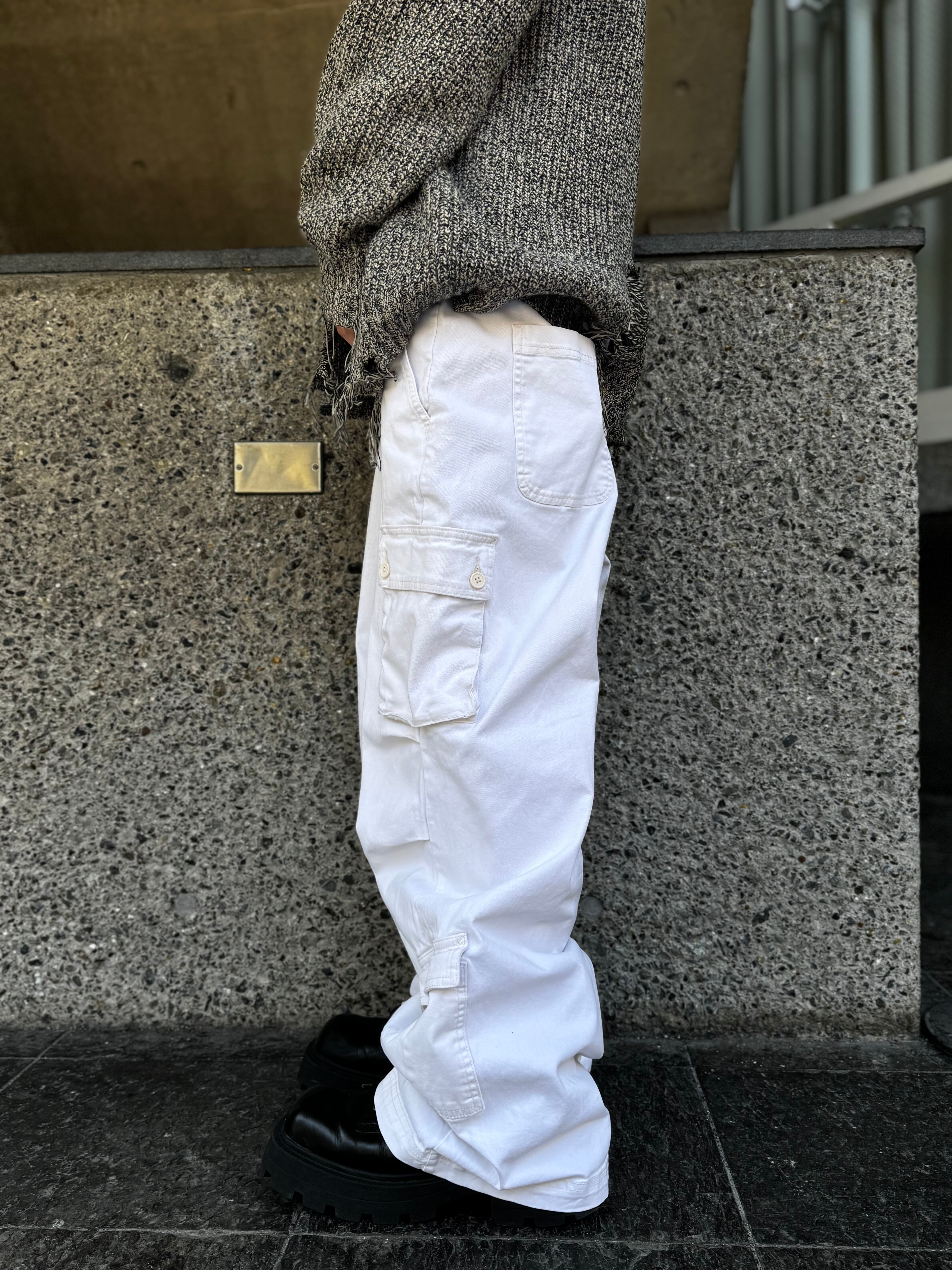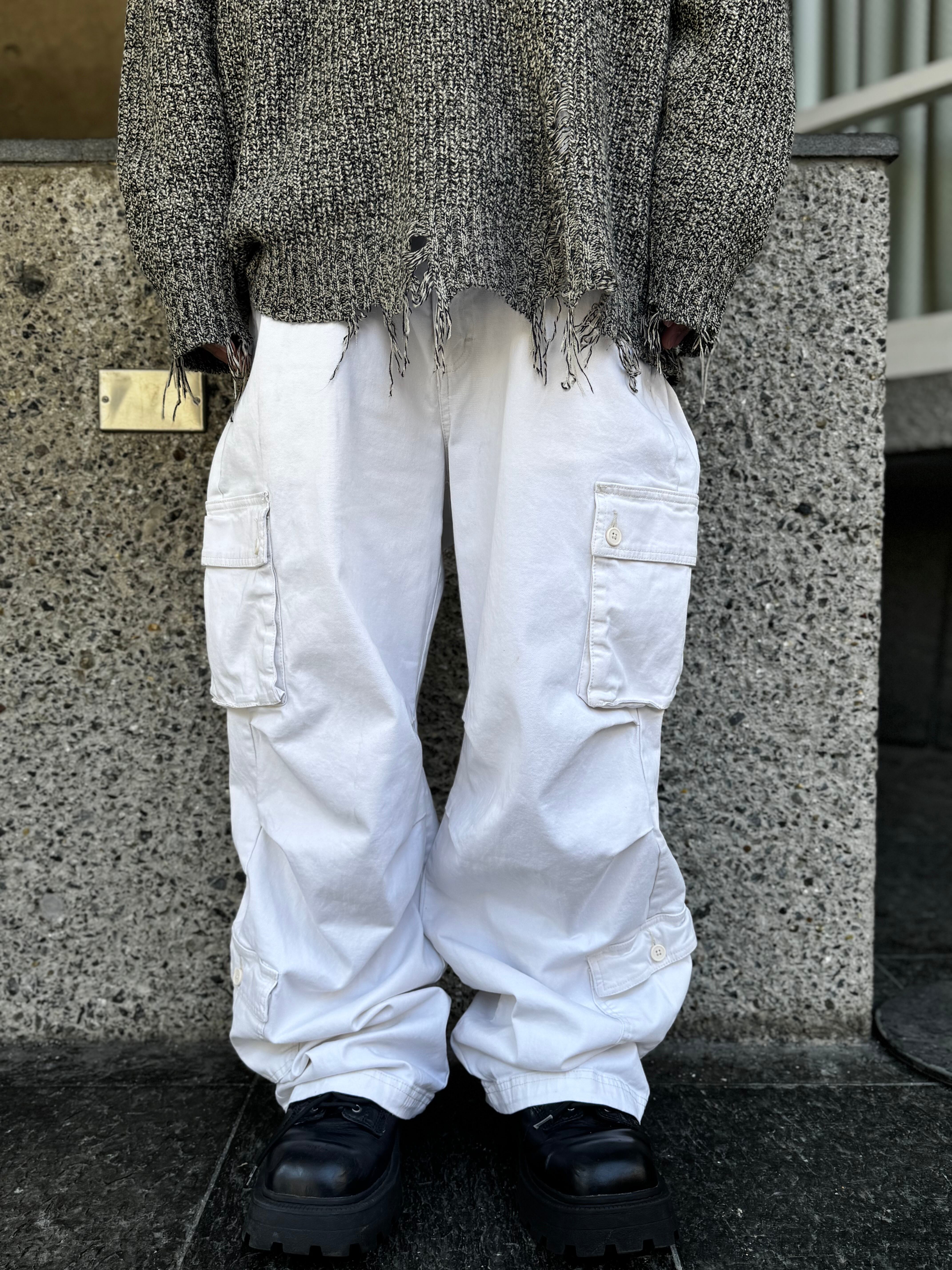 【wild fable】Cargo pocket knee tuck wide White chino pants