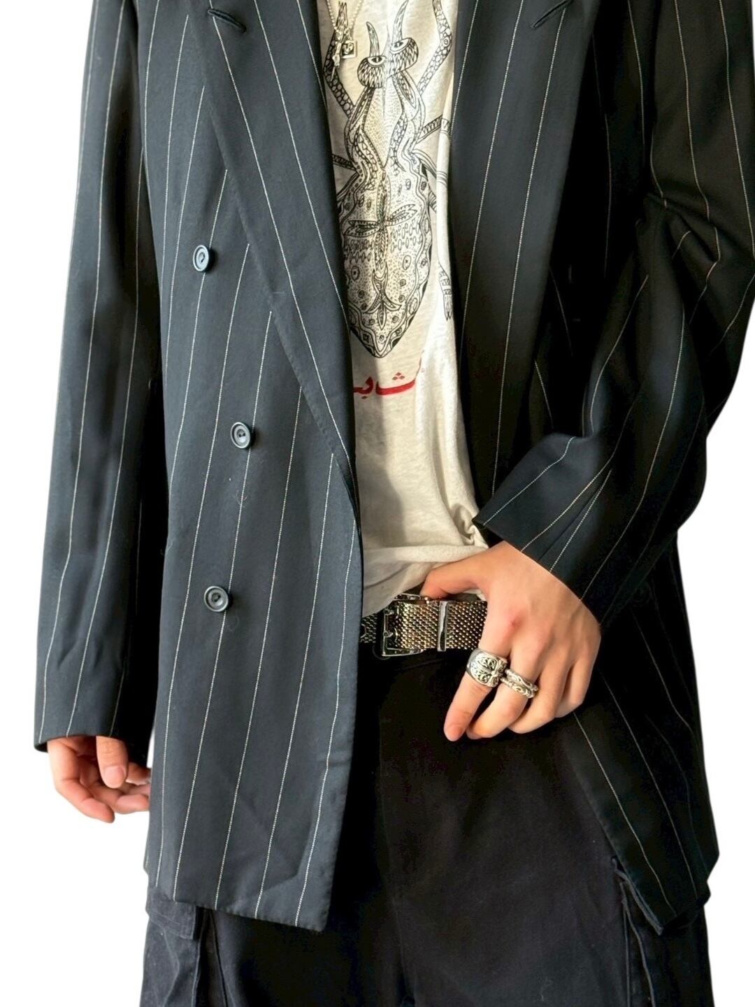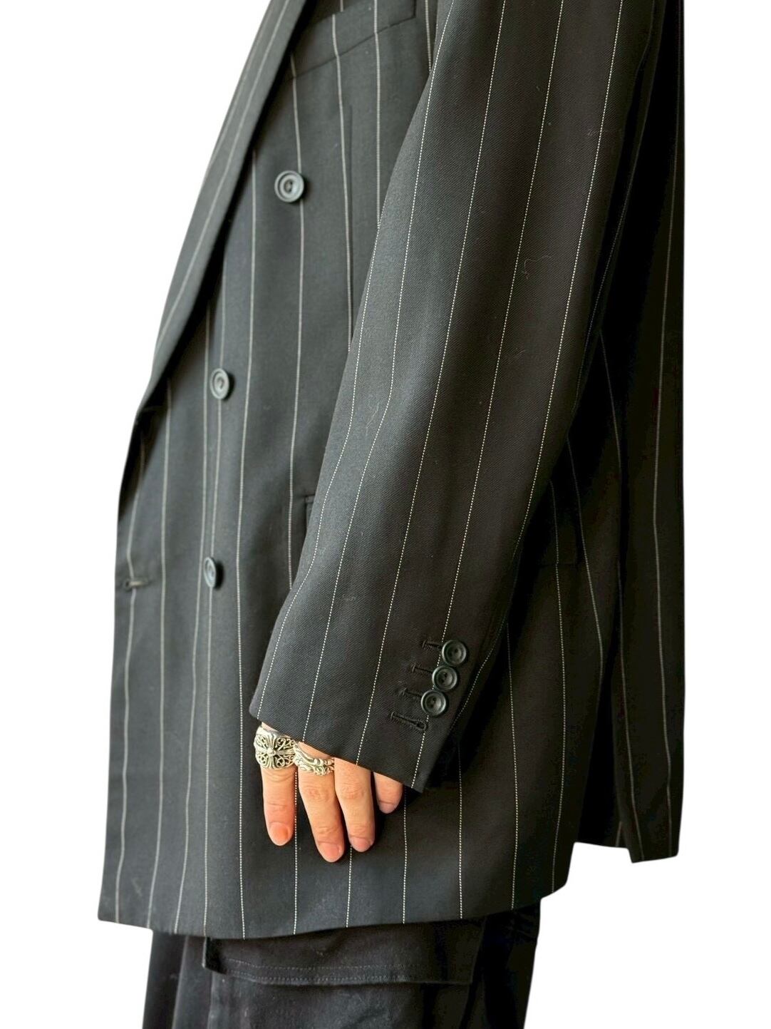 【80s EDGAR POMEROY】Stripe pattern Oversized Double-breasted tailored jacket -MADE IN U.S.A.-