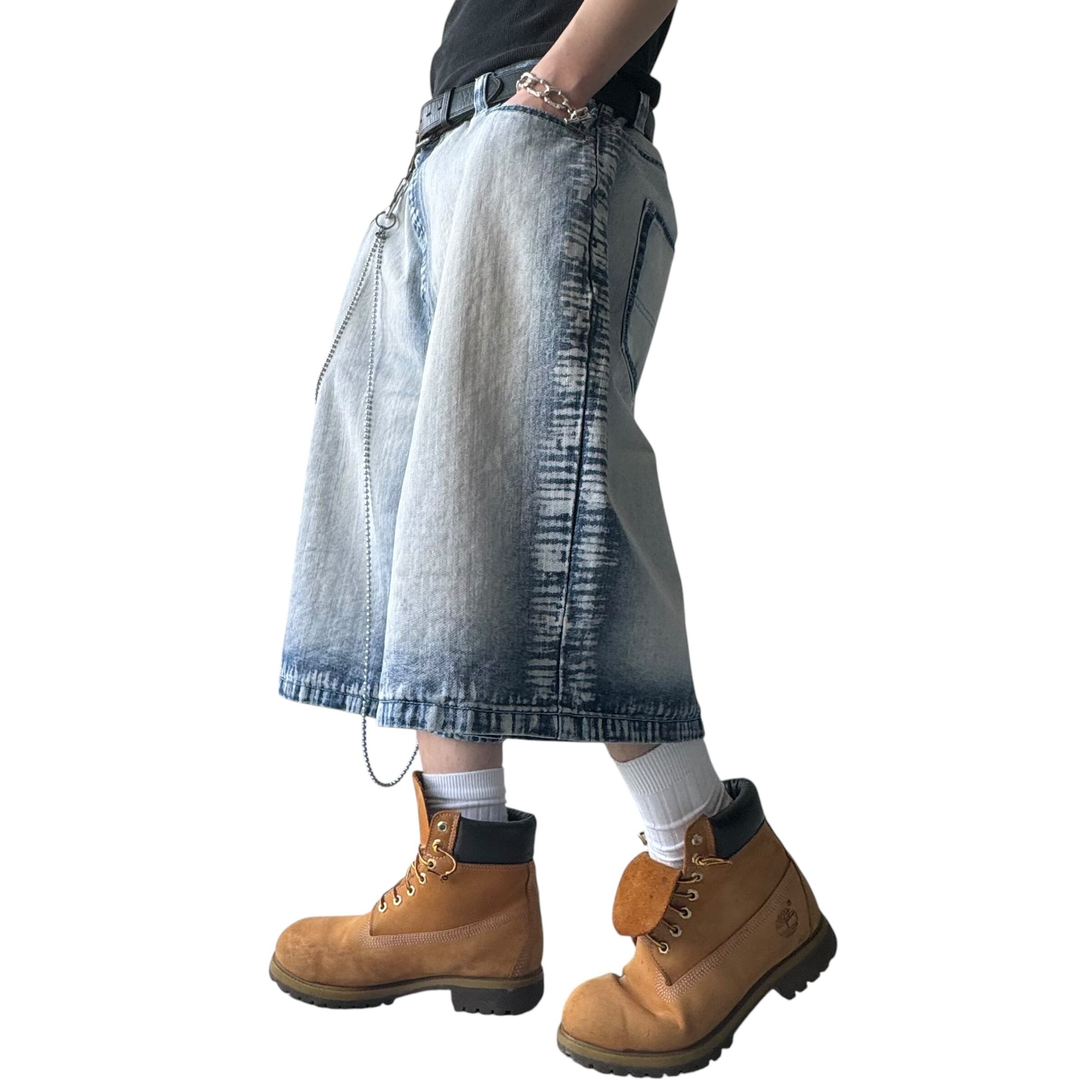 ♾BOOMX jeans♾ high bleach gradation color wide buggy shorts