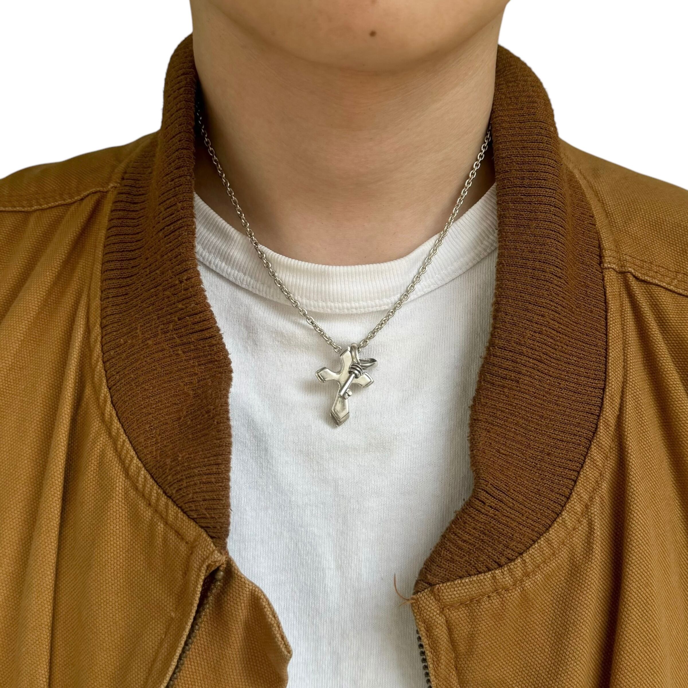 ♾vintage silver jewelry♾ cross motif w top design necklace sv925