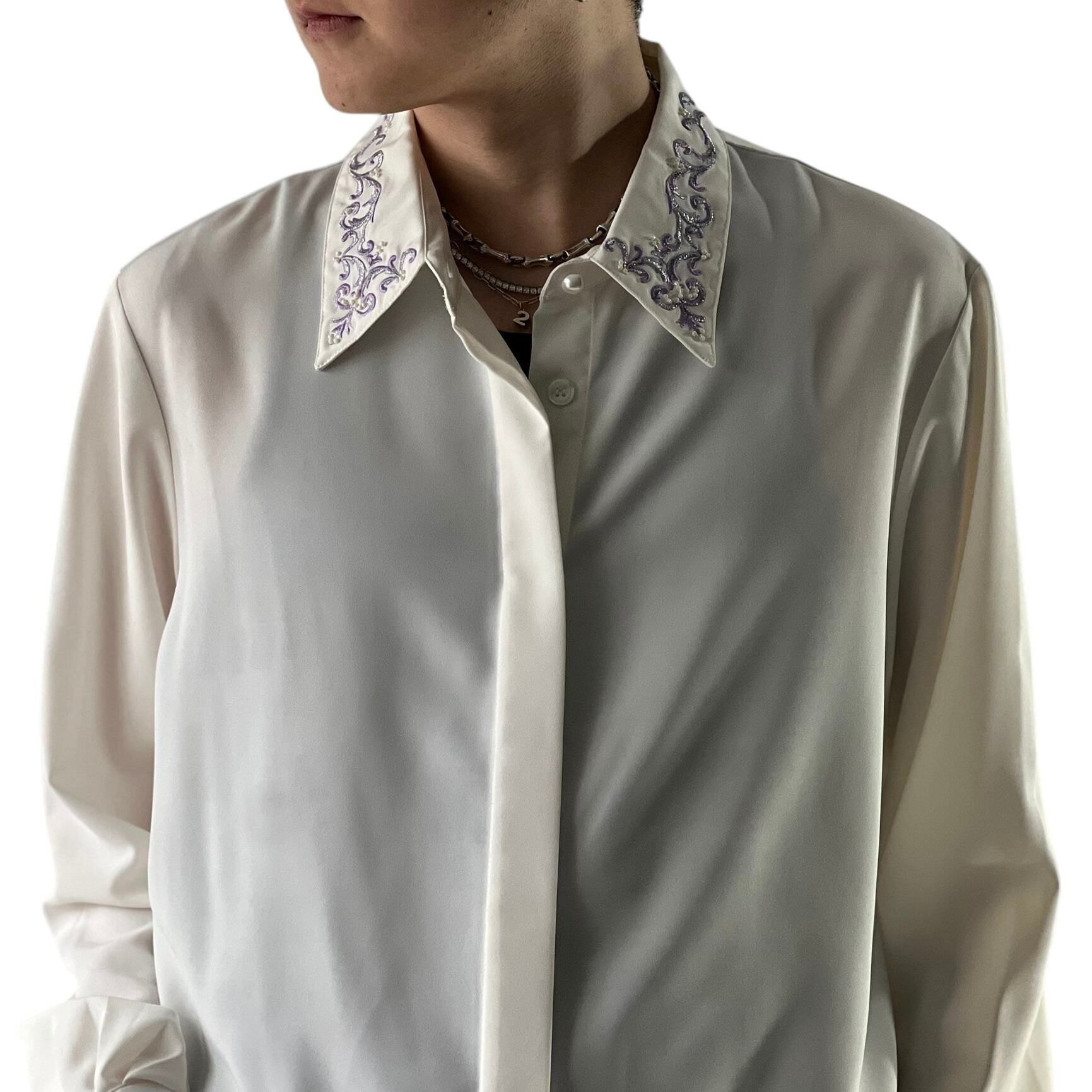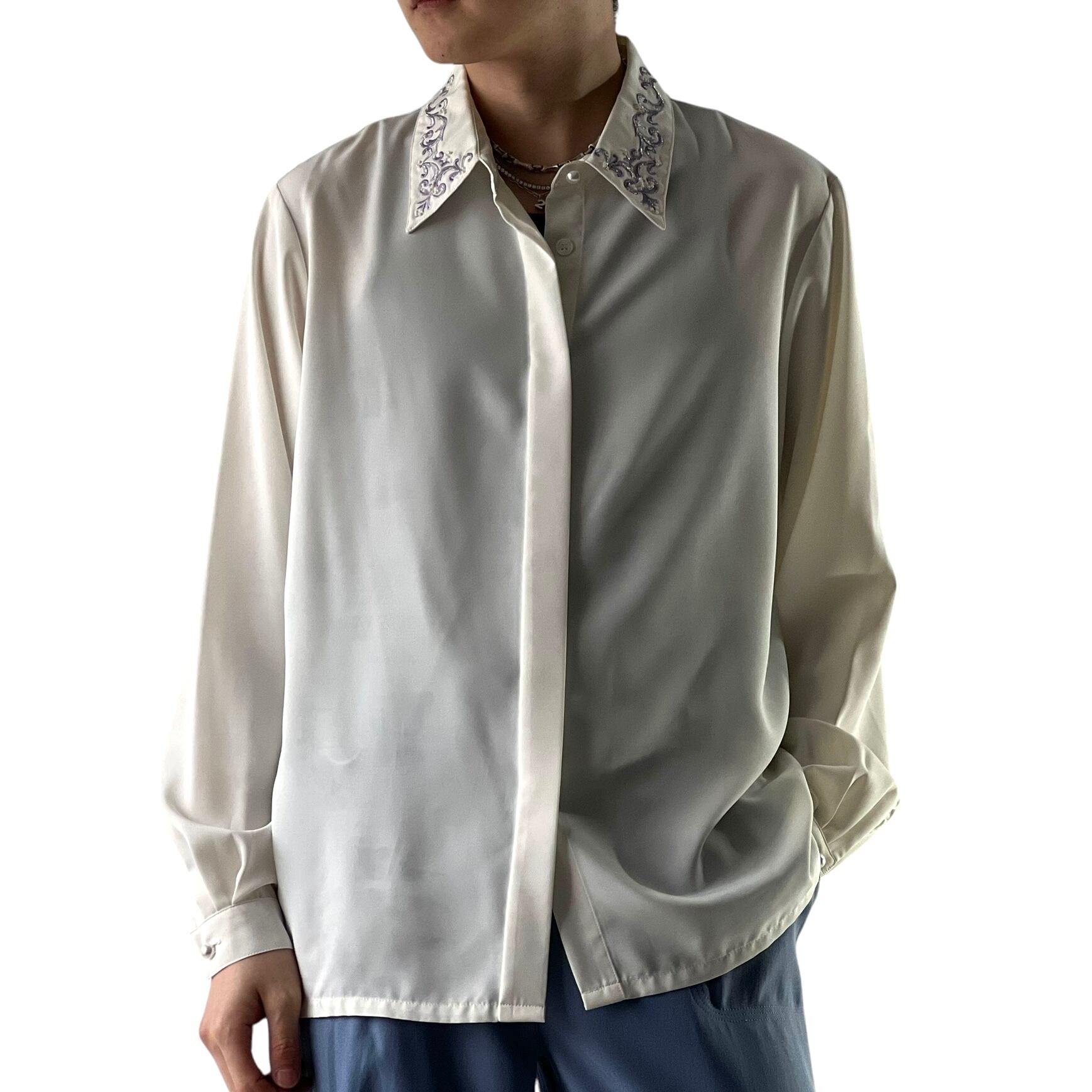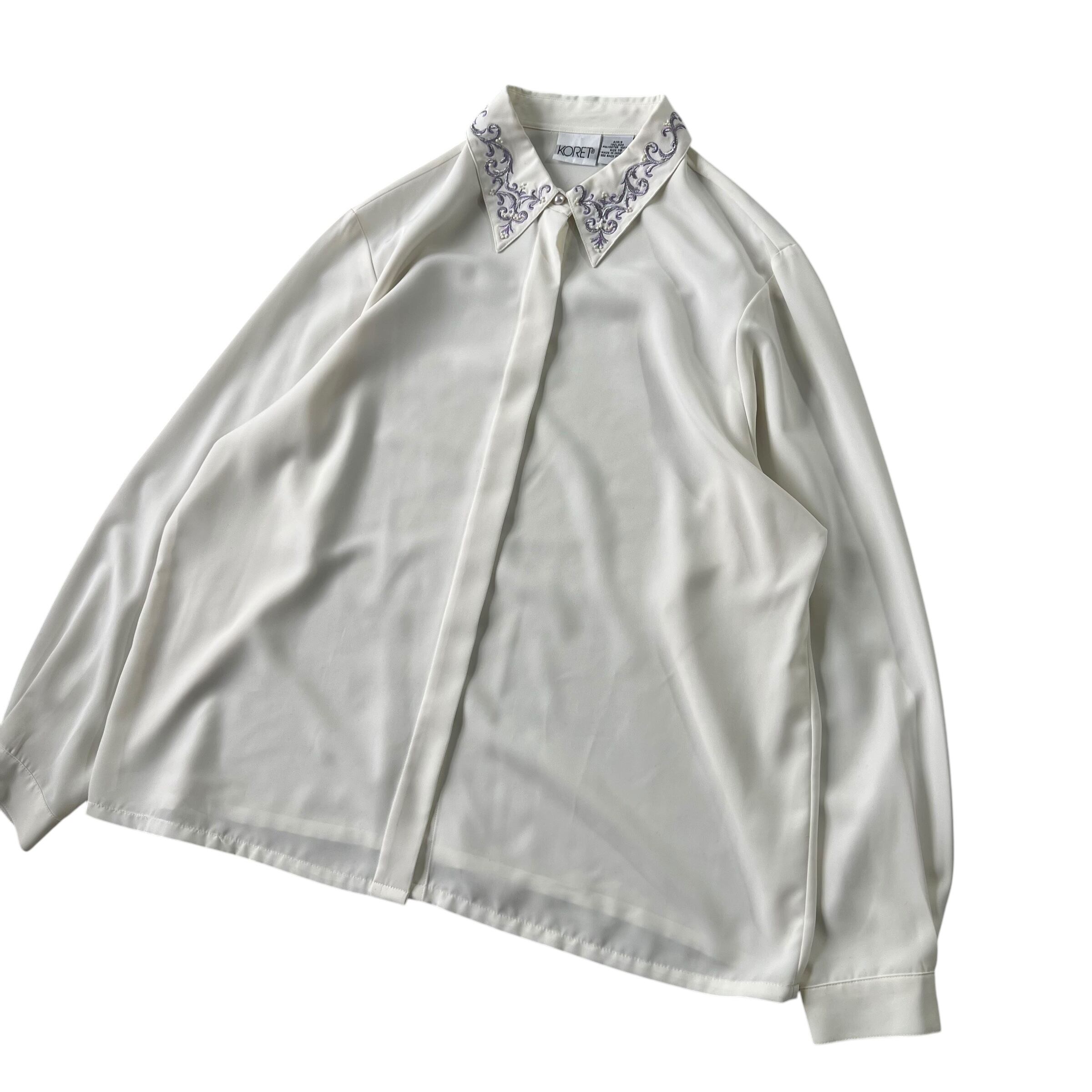 【KORET】 Embroidered collar decoration concealed dress shirt