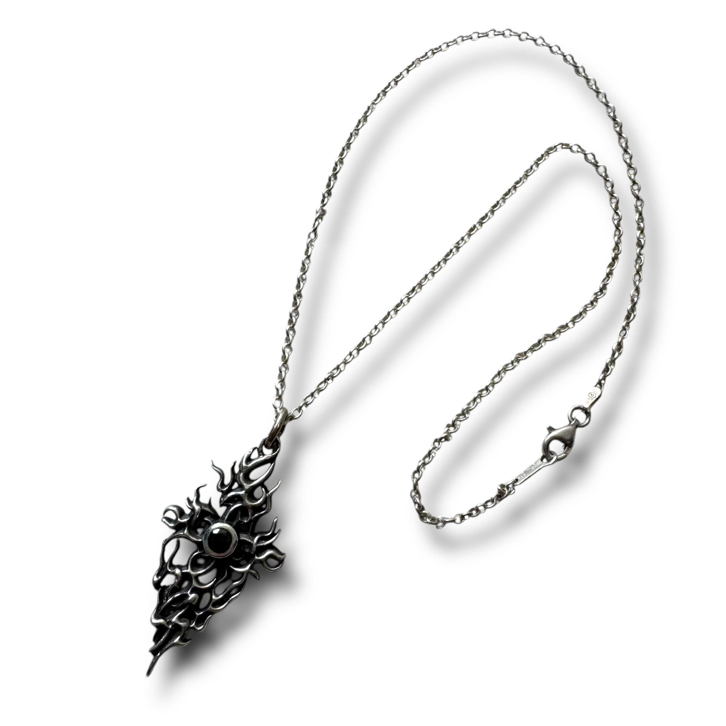 ファイヤーのようなトライバルのようなモチーフが目を引くデザインペンダントトップネックレス‼️