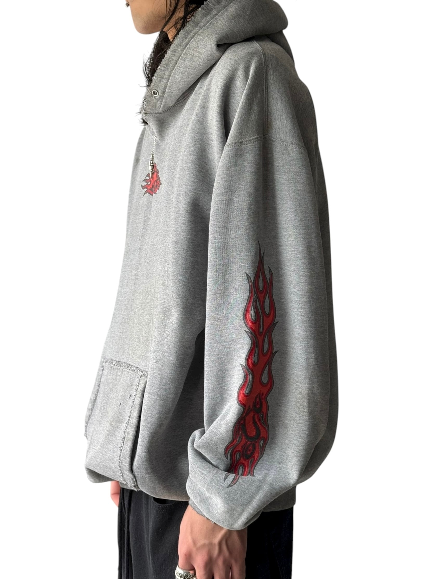 フロント、袖、バックプリントのフレイムがバチイケなグレーパーカー‼️