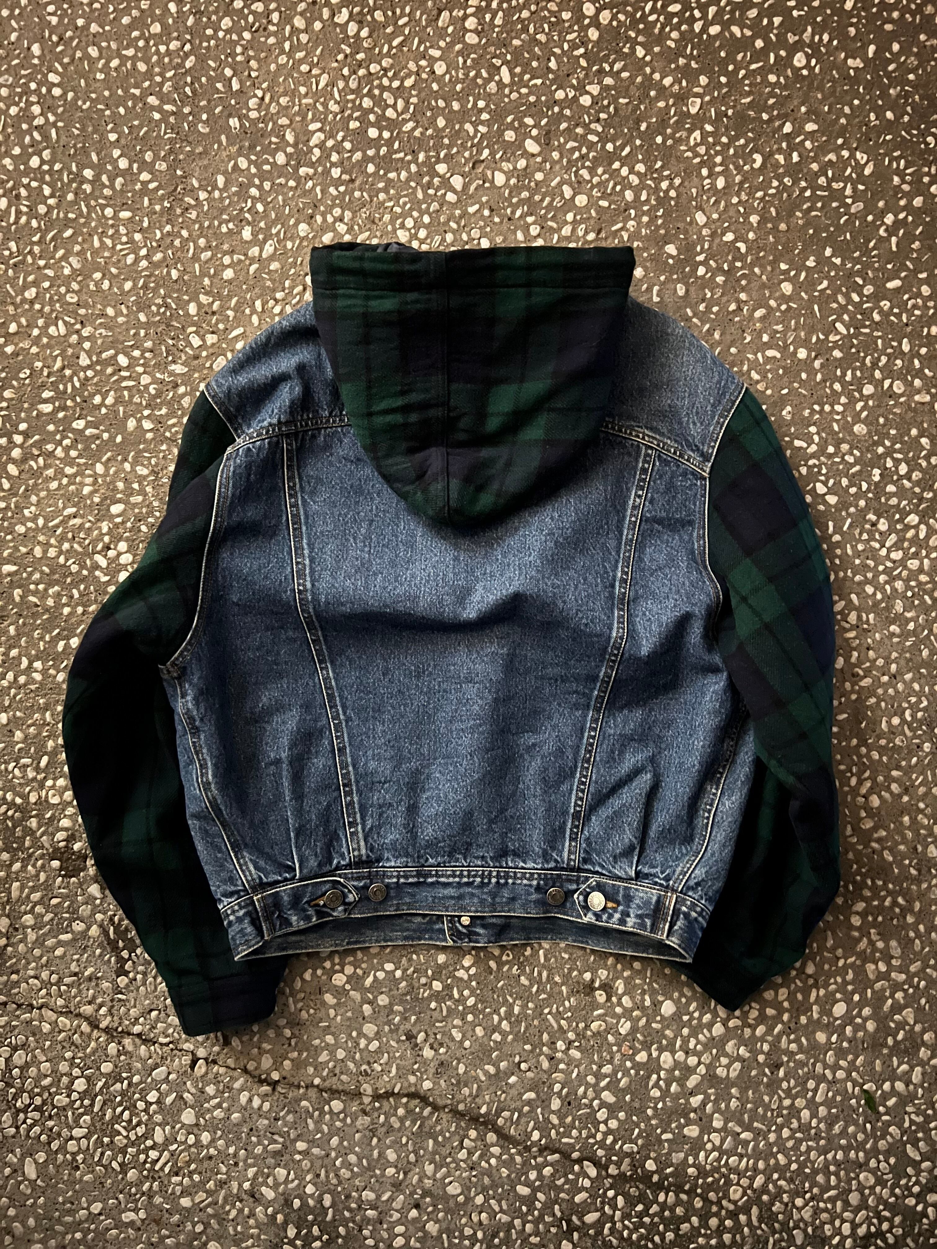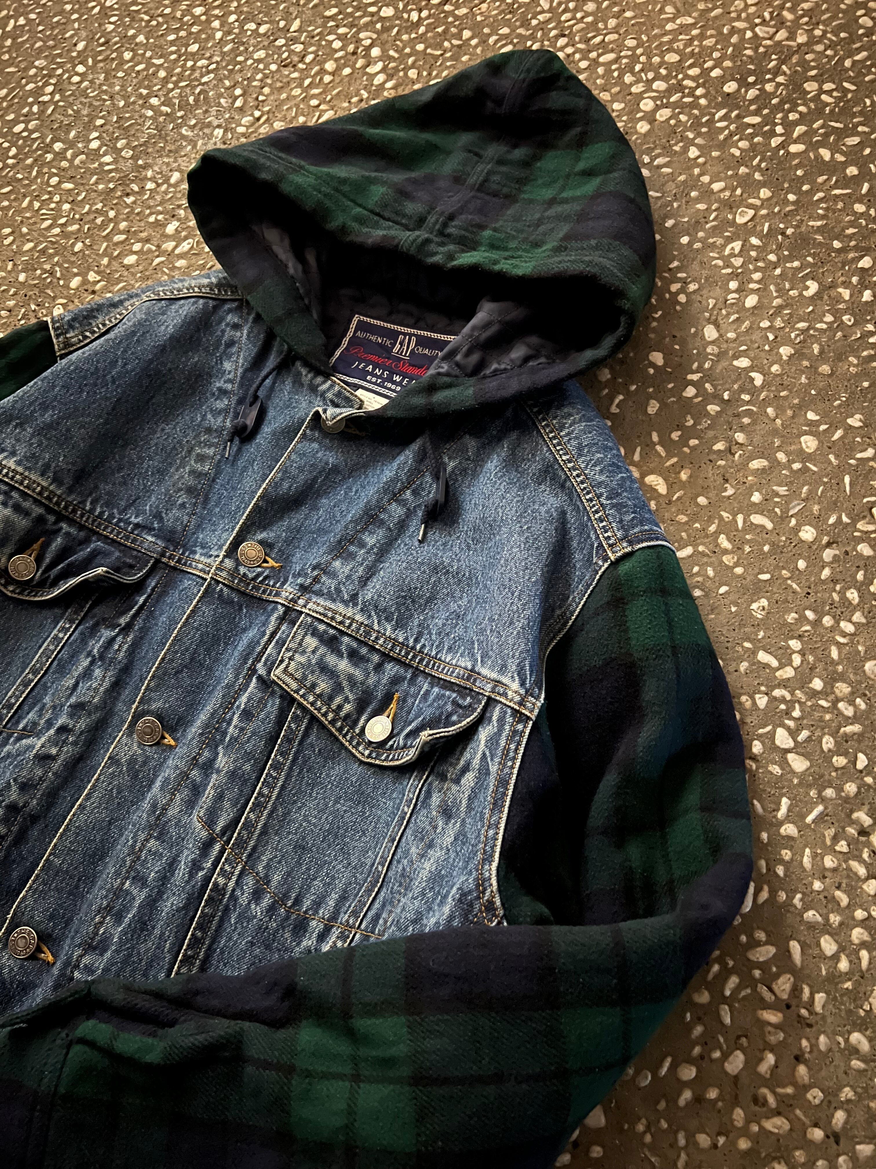 【GAP AUTHENTIC QUALITY FIT】Blackwatch pattern swiching hooded denim jacket