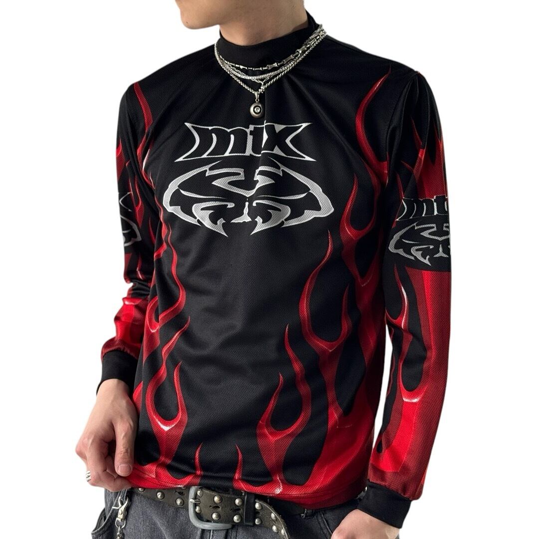 ♾MTX♾ fire patterned mesh type design long sleeve sizeL
