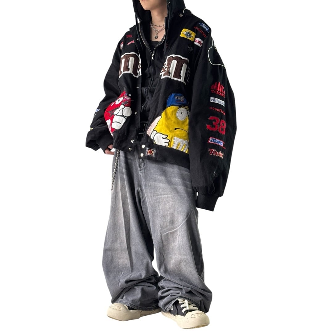 ♾ JEFF HAMILTON ♾ "m&m's" JH DESIGN design patchwork over sized racing jacket size4XL