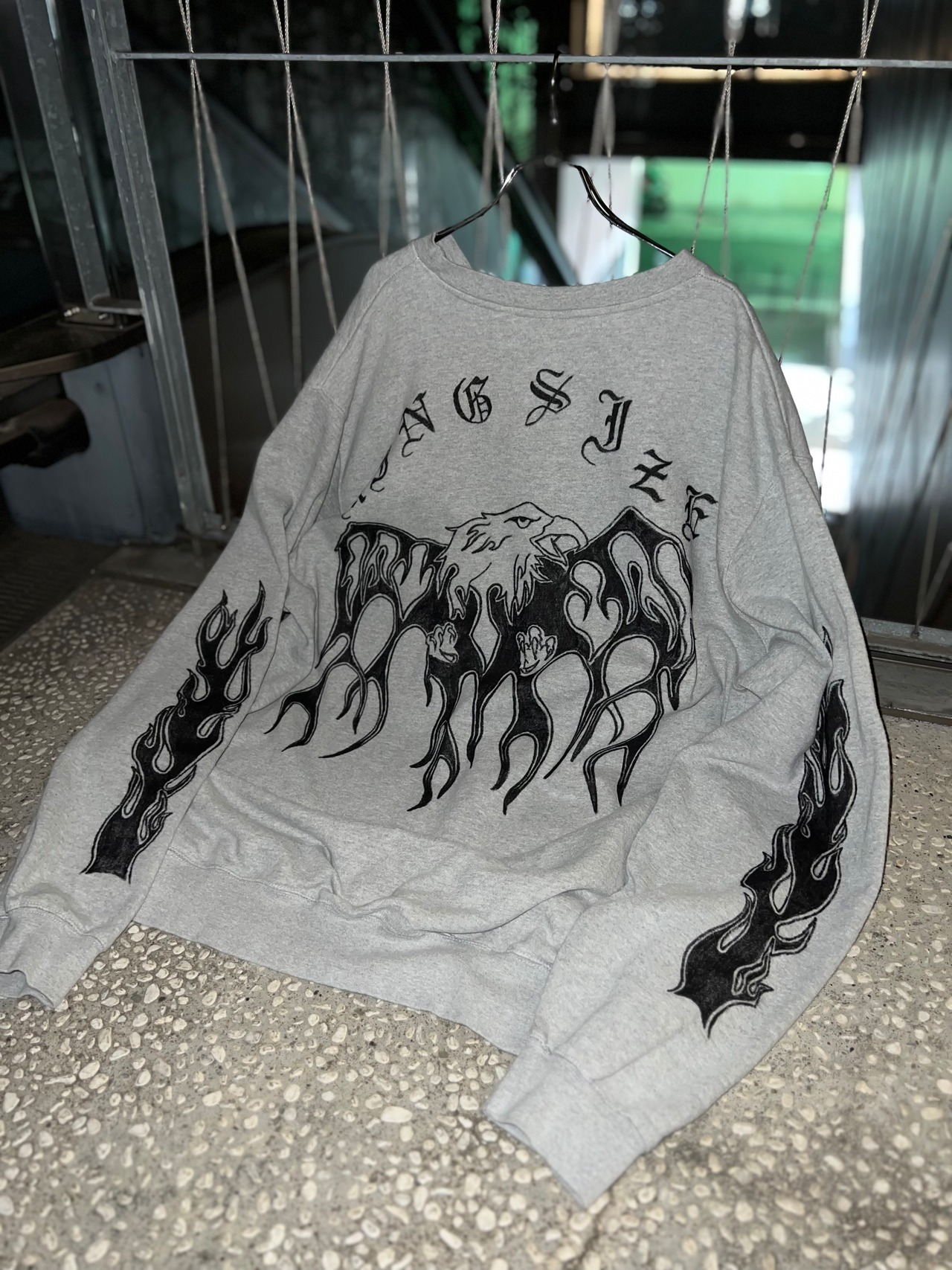 オーバーサイズで形のいい"KINGSIZE"のスウェットよりハンドペイントが施されたオンリーワンなかっこいいアイテムが◎