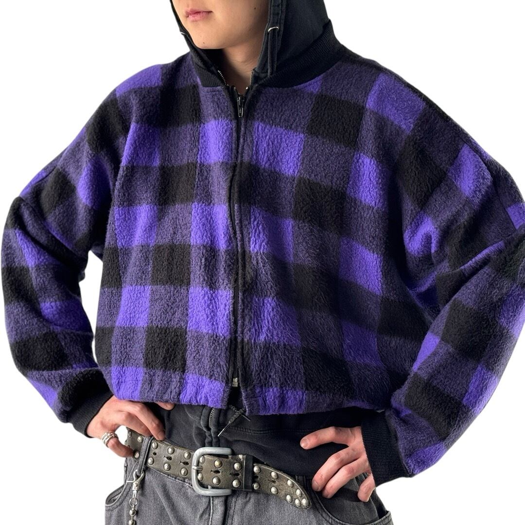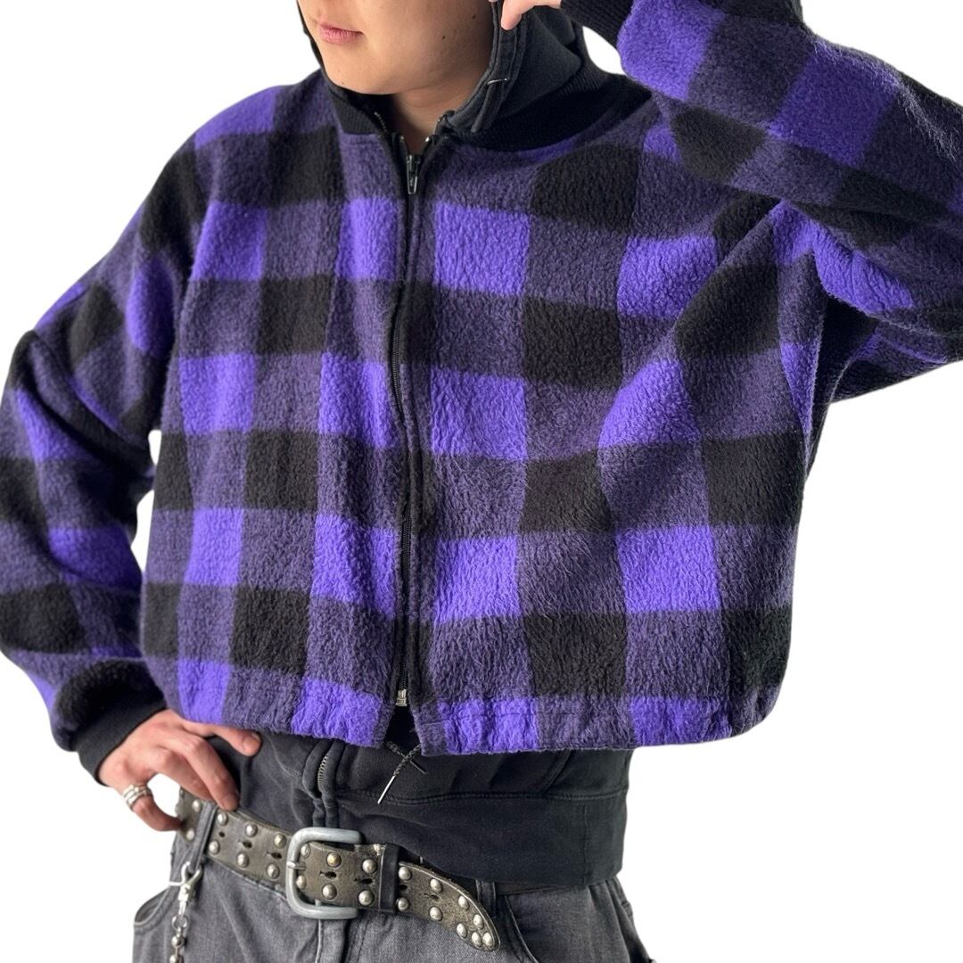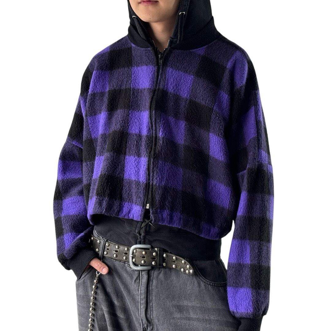 ♾made inc♾ check patterned wide short length zip up jacket MADE IN U.S.A.
