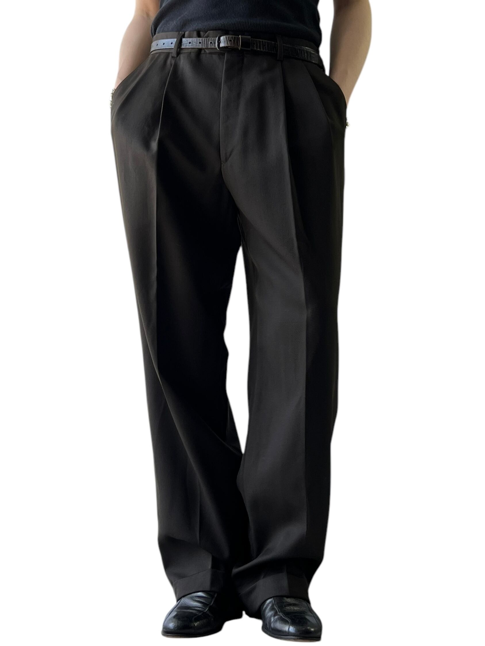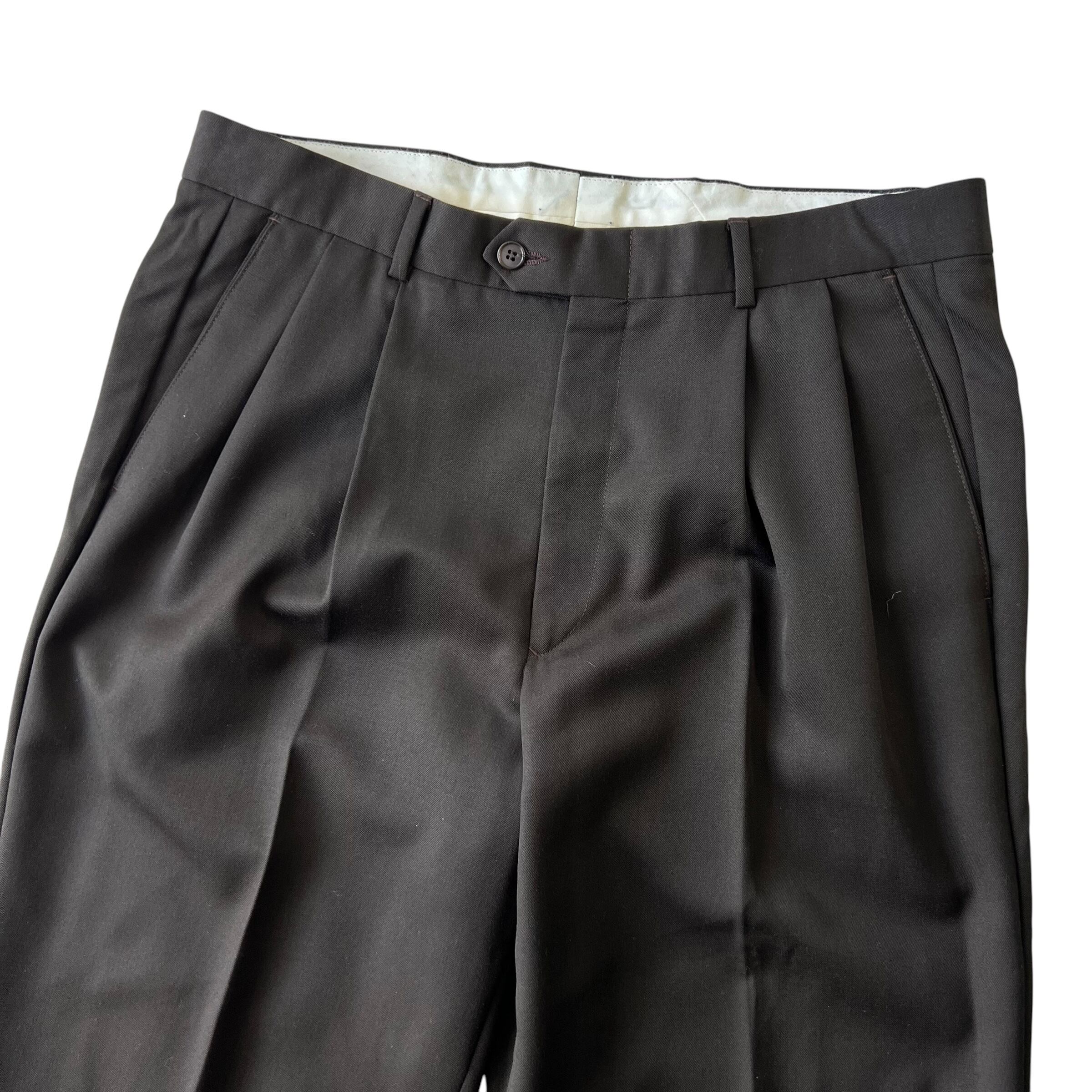 Two-pleat wide slacks / Dark brown