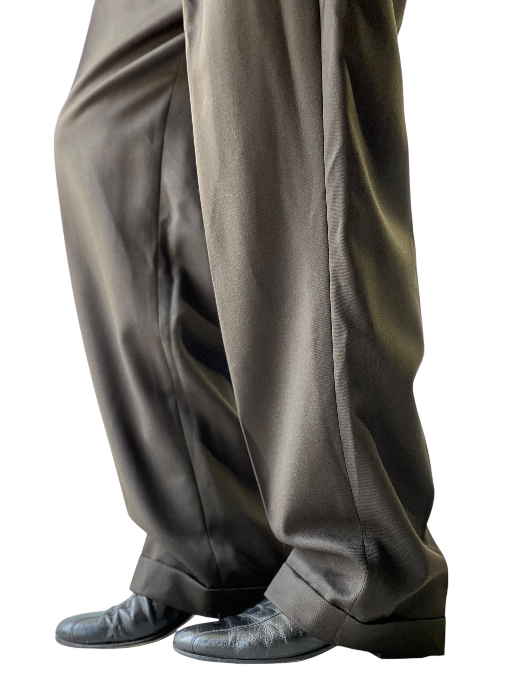 ダークブラウンの超綺麗なシルエットのワイドスラックス…