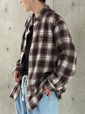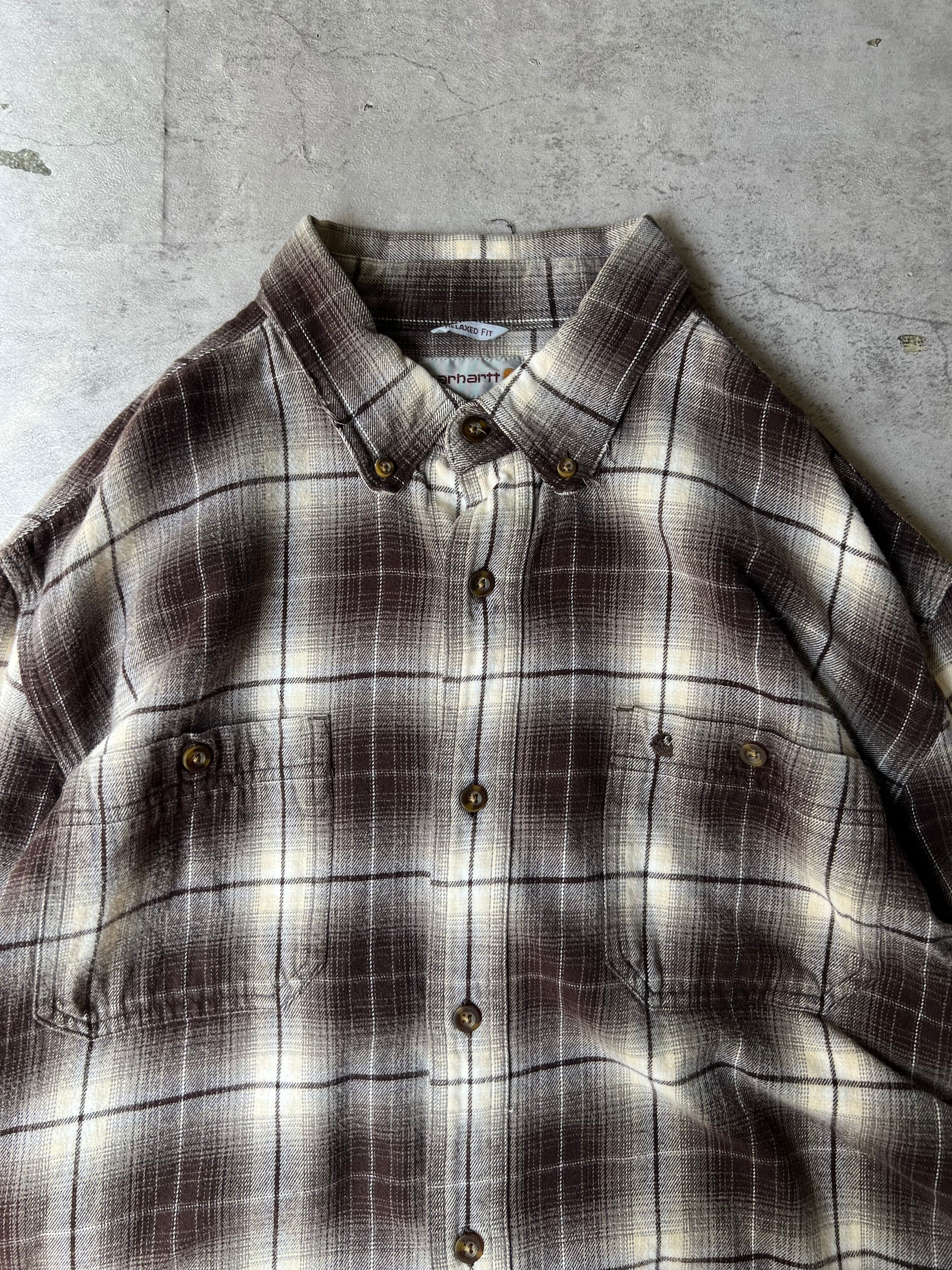 【carhartt】 Distressed ombre check shirt / -Brown-