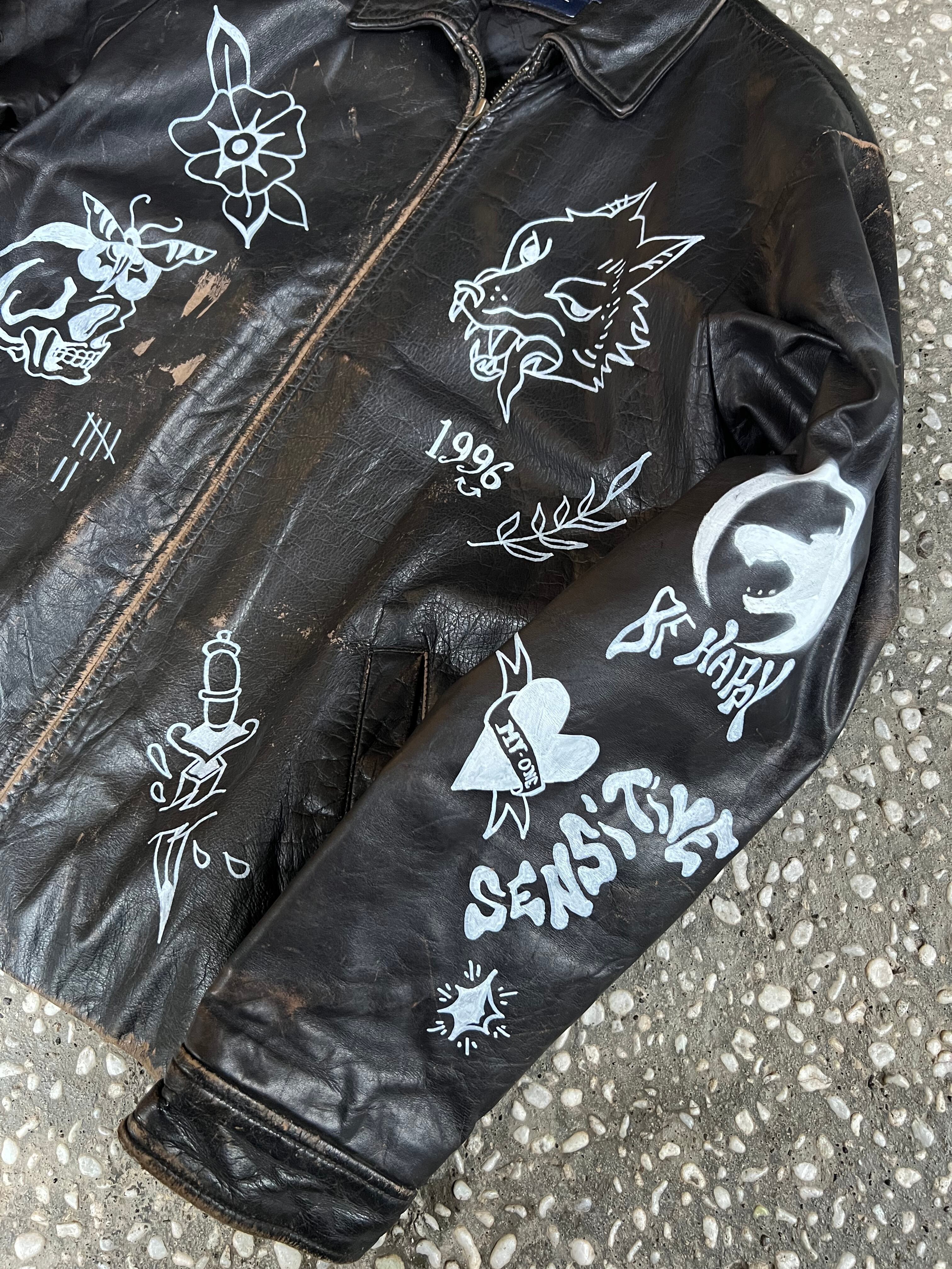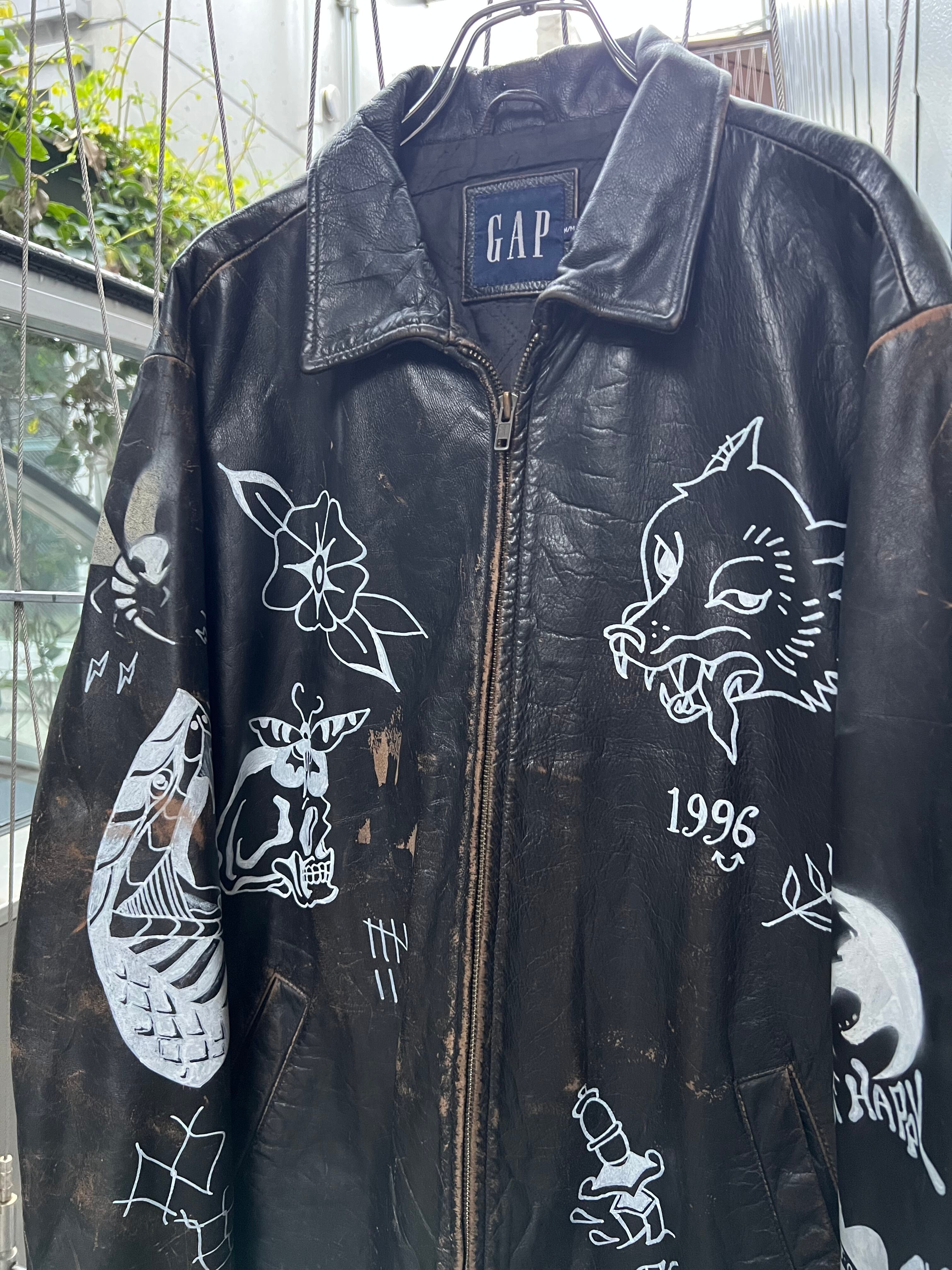 経年によるレザーの掠れやハンドペイントデザインが無二で存在感あるデザインがめちゃくちゃかっこいいオススメの1着が入荷です◎