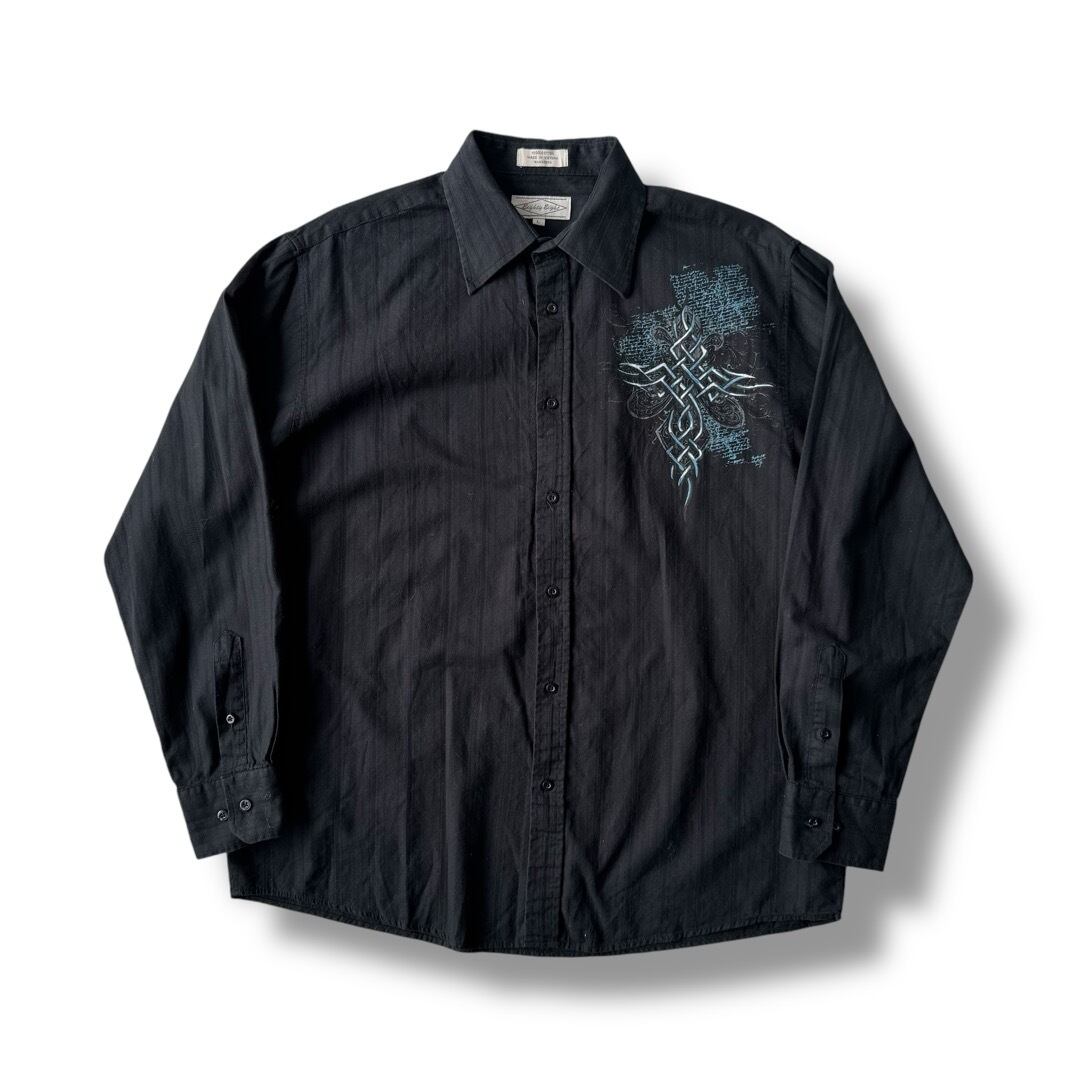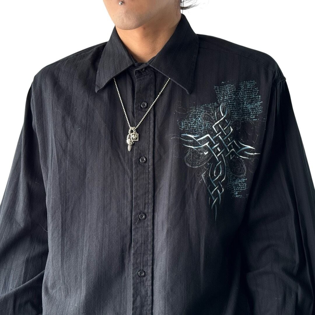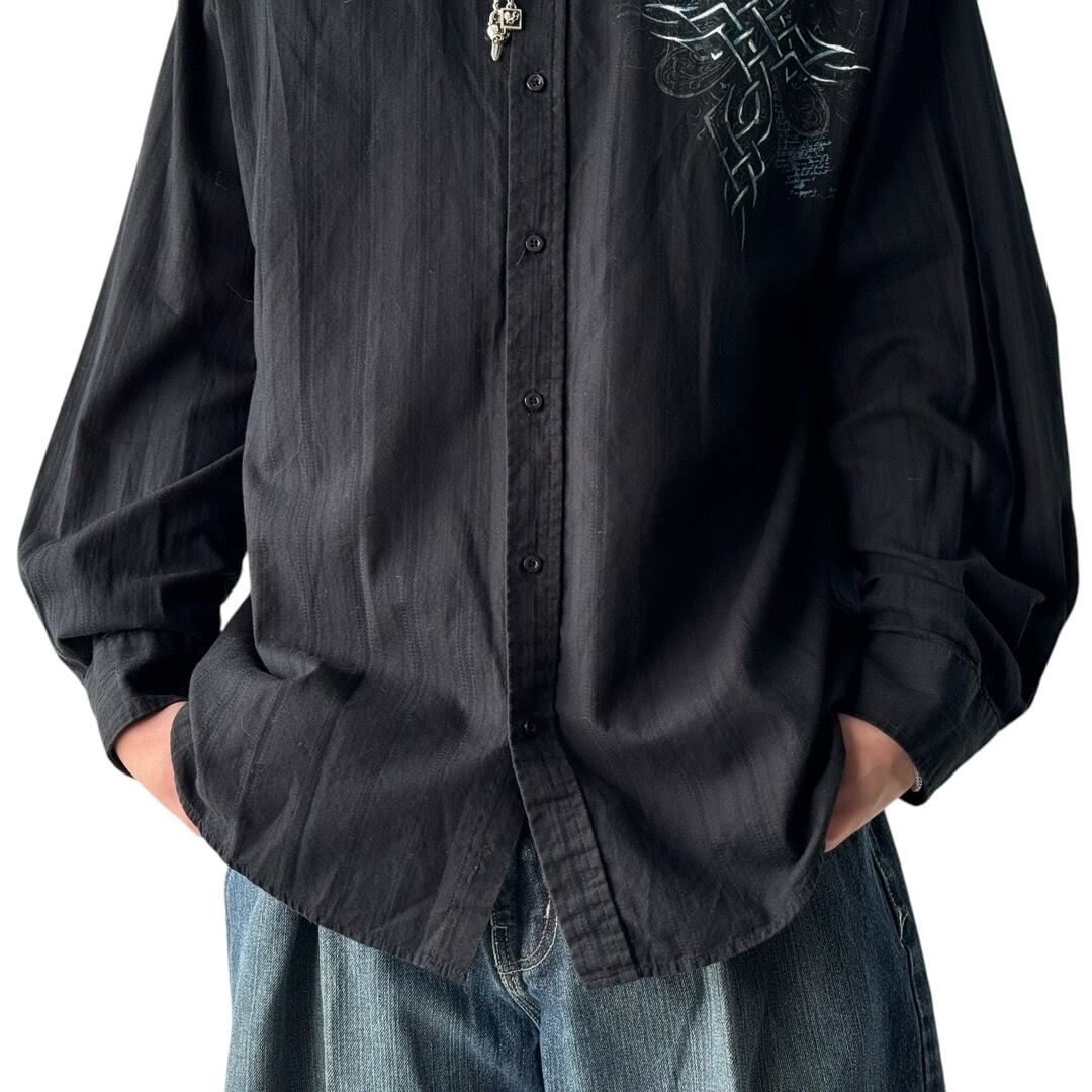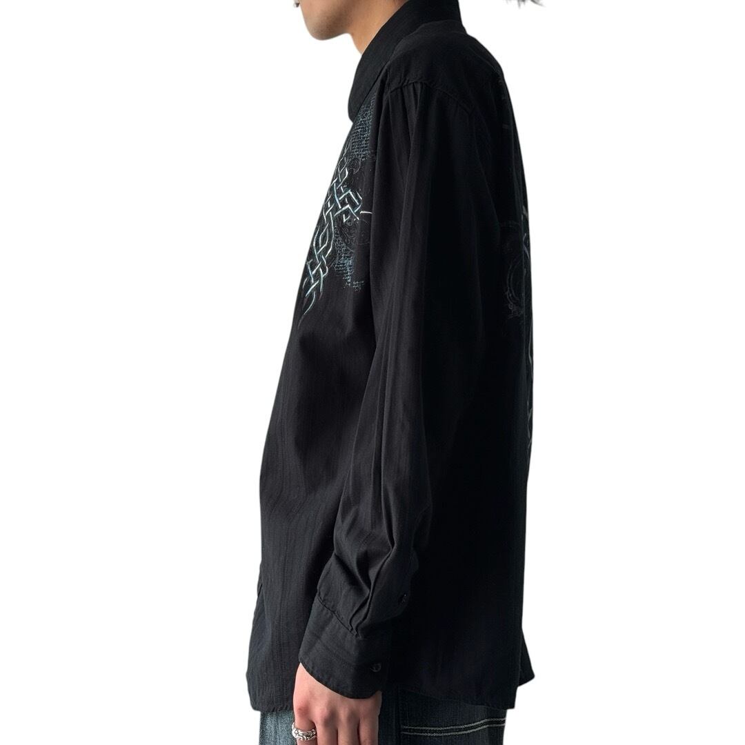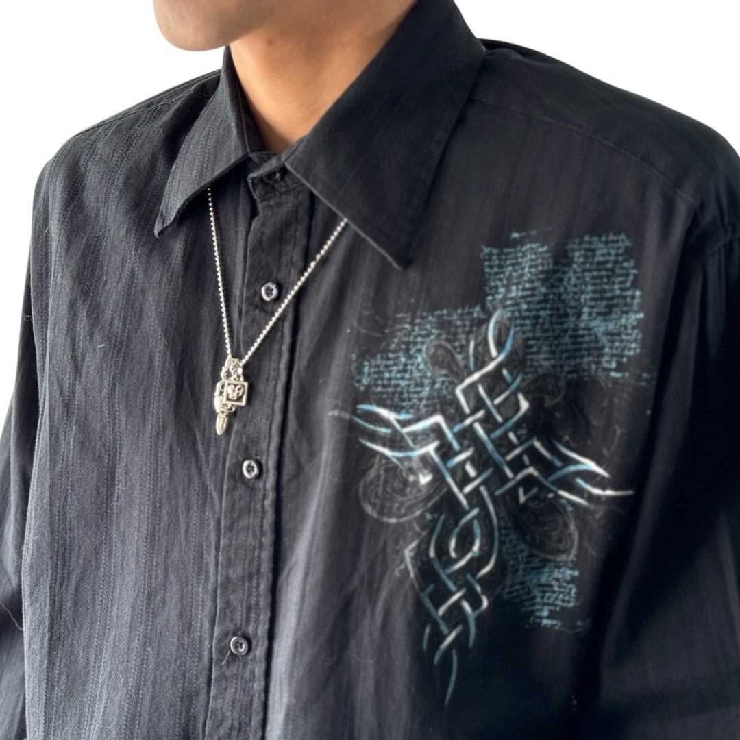 胸元と背面にトライバルとフローラルデザインがプリントされており少しメタリックが混ざってるのが2000年代の雰囲気があり厨二病心くすぐる感じ‼️